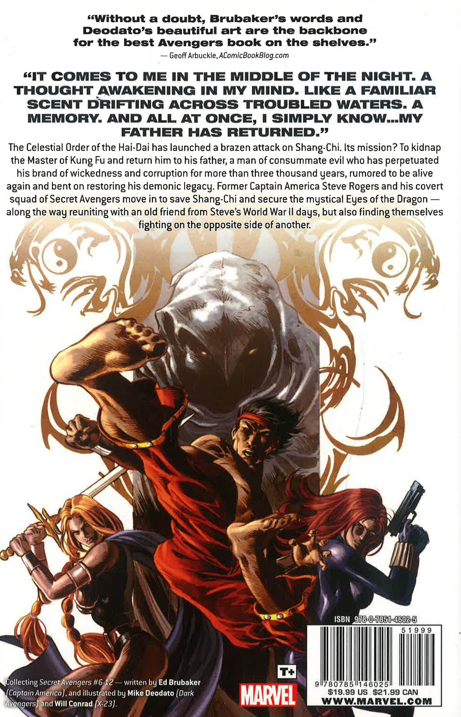 The Celestial Order of the Hai-Dai has launched a brazen attack on Shang-Chi. Its mission? To kidnap the Master of Kung Fu and return him to his father, a man of consummate evil who has perpetuated his brand of wickedness and corruption for more than three thousand years, rumored to be alive again and bent on restoring his demonic legacy. Former Captain America Steve Rogers and his covert squad of Secret Avengers move in to save Shang-Chi and secure the mystical Eyes of the Dragon - along the way reuniting with an old friend from Steve's World War II days, but also finding themselves fighting on the opposite side of one another.