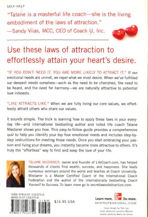 It sounds simple. The trick is learning how to apply these laws in your everyday life--and international bestselling author and noted life coach Talane Miedaner shows you how. This easy-to-follow guide provides a comprehensive quiz to help you identify your top four emotional needs and includes step-by-step instructions on how to meet those needs. Once you start embracing your passion and living your dreams, you instantly become more attractive to others. It's truly the "effortless" way to find and keep the love of your life.