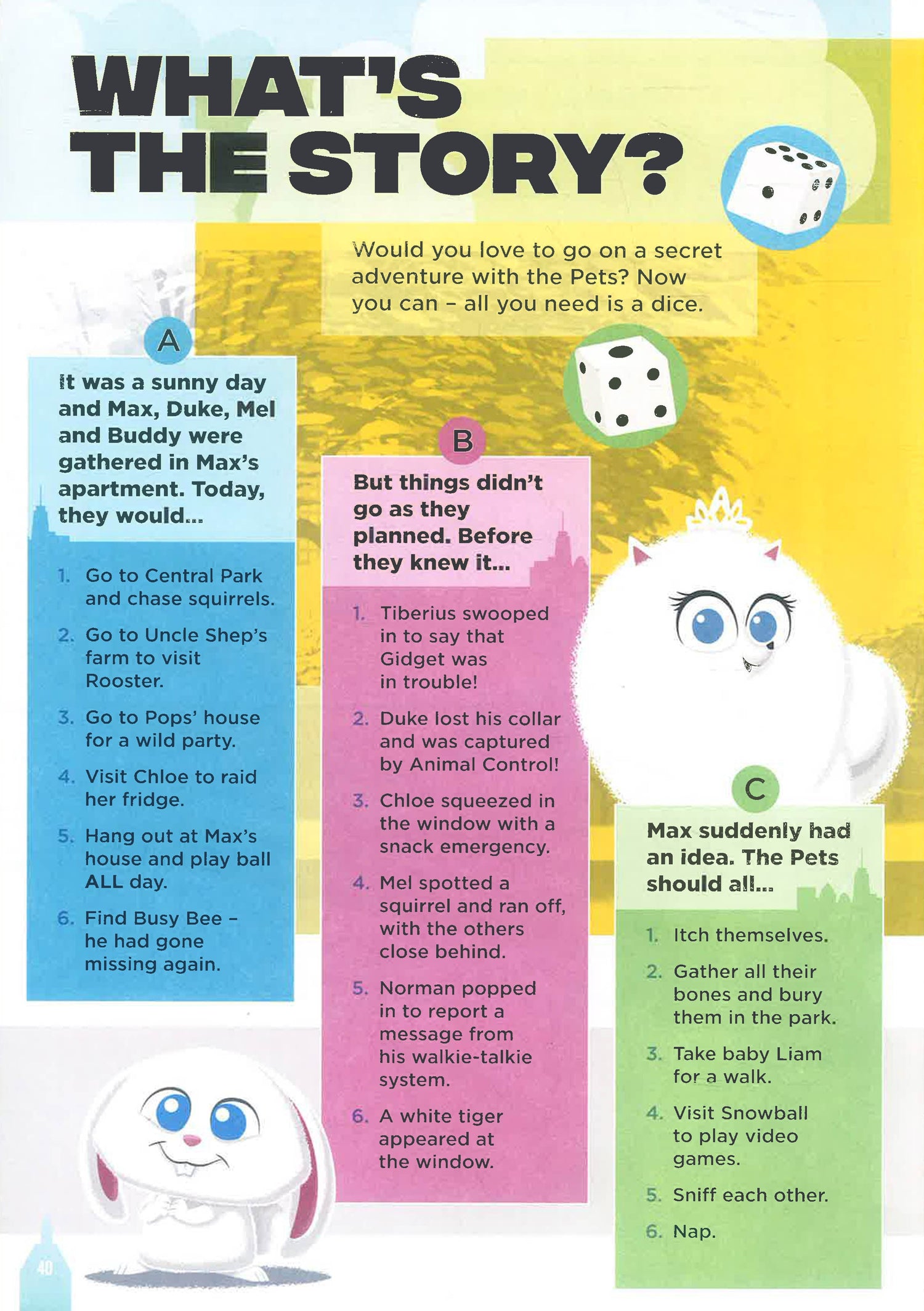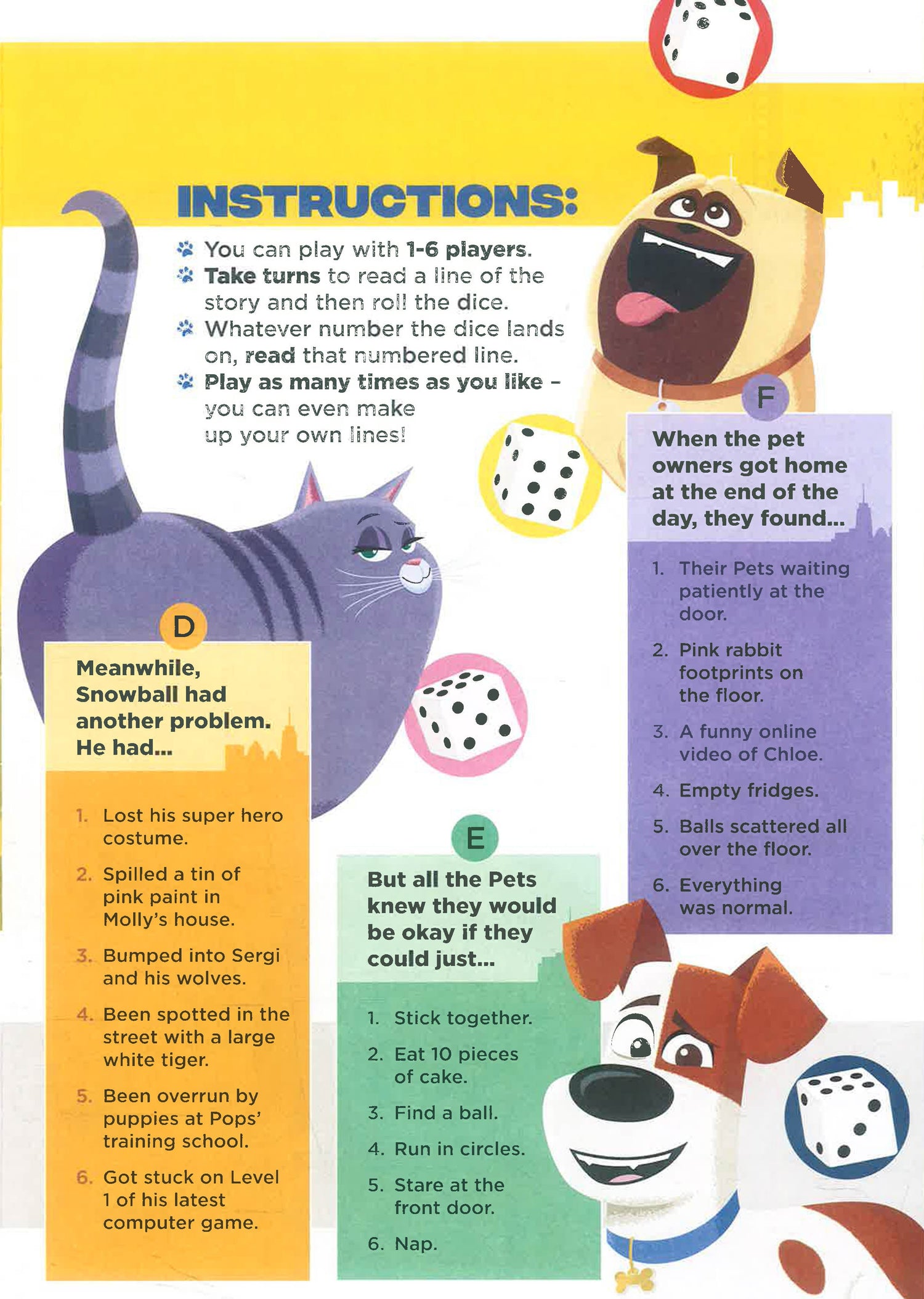 48 pages of activity fun, packed with games, puzzles and doodles, for hours of entertainment. Comes with 4 press-out characters masks to make. Features all your favourite characters from the new Pets 2 movie.