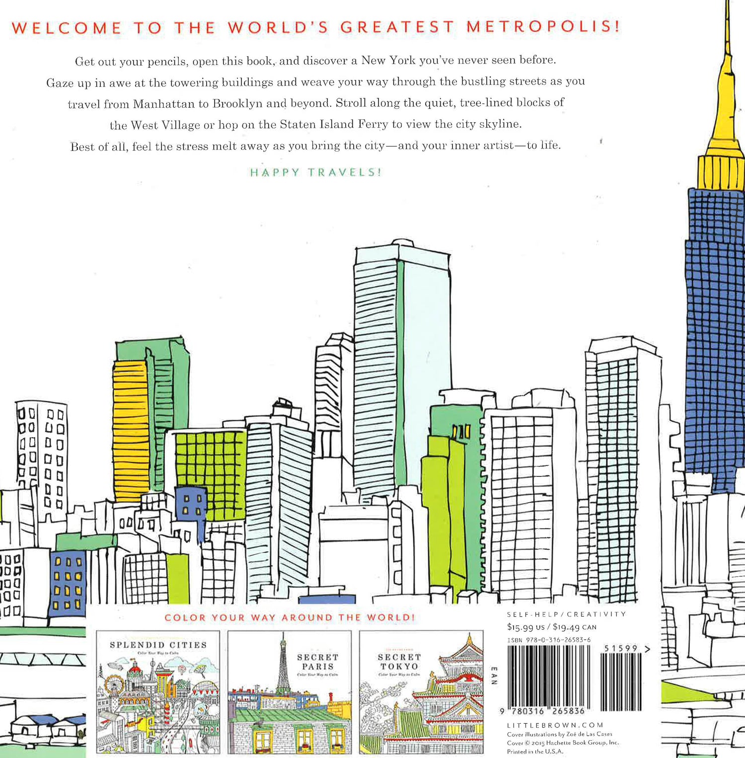 A coloring book that will relax and inspire--all the while transporting you to the wonderful world of New York City. Get your pens out, open this book, and discover a New York like you've never seen before. Gaze up in awe at the towering buildings and make your way through the bustling streets as you travel from Manhattan to Brooklyn and beyond. Feel the stress melt away as you bring the city--and your inner artist--to life. Appealing to all ages, this intricate coloring book will inspire and delight.