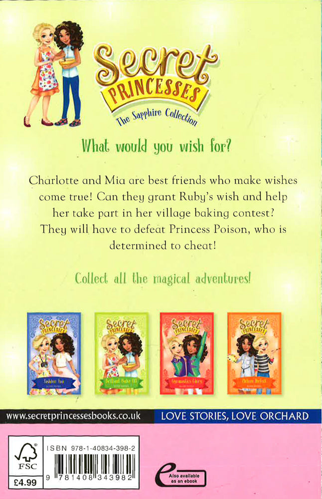 A gorgeous series about magical princesses and best friends!Best friends Charlotte and Mia are training to become Secret Princesses, magical princesses with the power to make wishes come true! Can they grant Ruby's wish and help her take part in the village baking contest? But they're not the only princesses in the bake off - and Princess Poison is determined to cheat!Have you read all four books in series four: The Sapphire Collection?Fashion FunBrilliant Bake-offGymnastics GloryPicture Perfect
