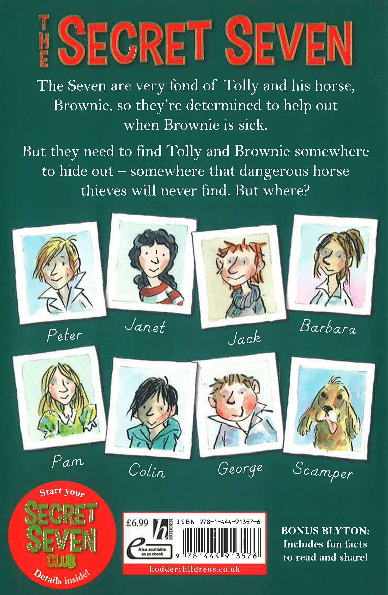 Solve the mystery with the Secret Seven - everyone's favourite detective club! These timeless stories are perfect for young fans of mystery, adventure or detective series. In book fifteen, the Seven are determined to help out. They are very fond of Tolly and his sick horse, Brownie and need to find them somewhere to hide out - somewhere that dangerous horse thieves will never think to look. But where?Solve the mystery! Cover and inside illustrations are by the brilliant Tony Ross, illustrator of David Walliams's books. The story was first published in 1963. This edition features the classic text and comes with a Bonus Blyton section at the back with quizzes, puzzles and other bonus extras! Have you read all 15 books in the original Secret Seven series by Enid Blyton? And don't miss these other Secret Seven titles...Mystery of the Skull - a brand-new Secret Seven mystery by prizewinning author Pamela Butchart. Secret Seven Brain Games - a fun and tricky puzzle book ***The Secret Seven (R), Enid Blyton (R) and Enid Blyton's signature are registered trade marks of Hodder & Stoughton Limited. No trade mark or copyrighted material may be reproduced without the express written permission of the trade mark and copyright owner.
