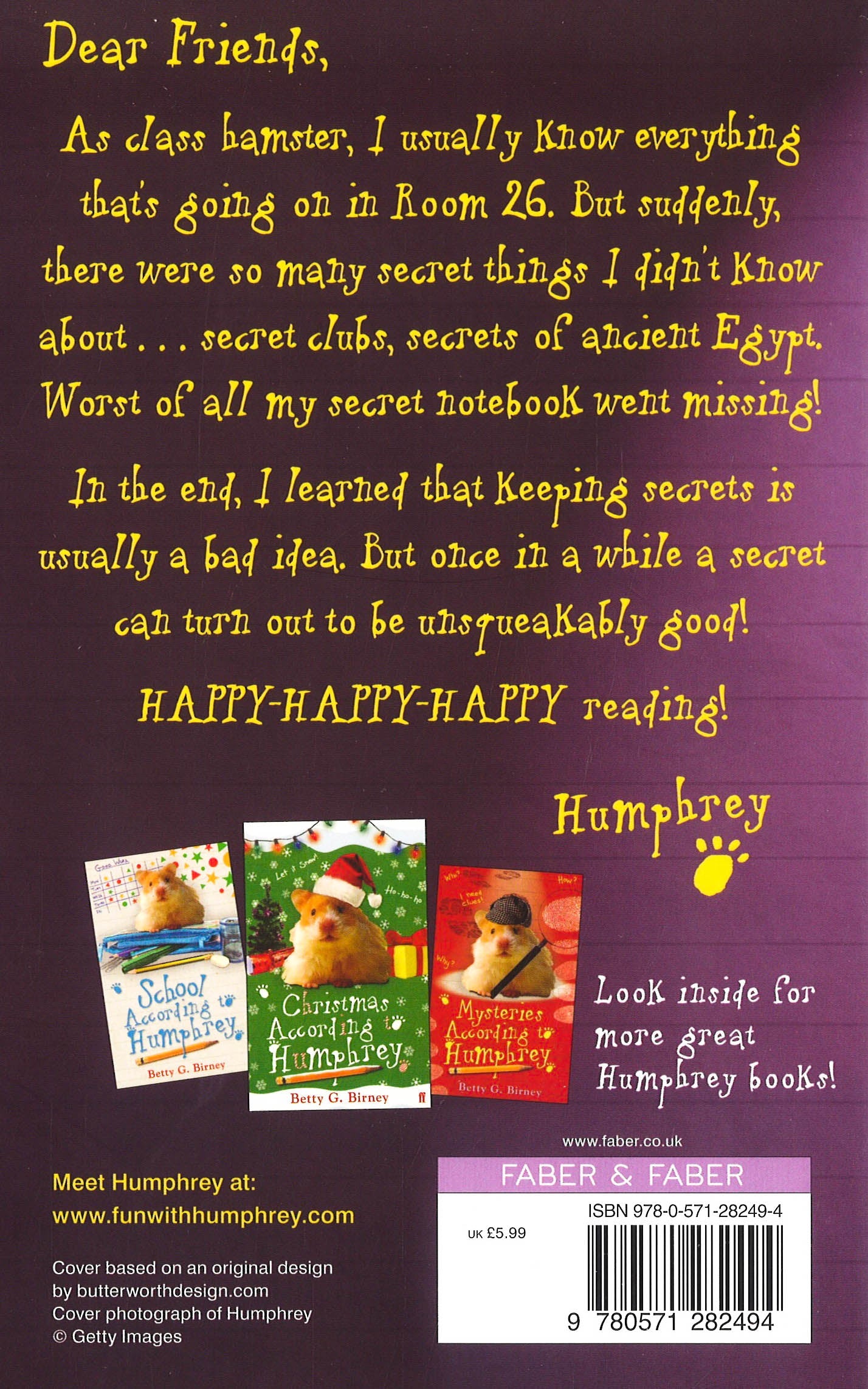 The next in the bestselling According to Humphrey series, Humphrey and his friends in Room 26 learn about ancient Egypt. Mummies, pharaohs, pyramids and plenty of SHH-SHH-SHH secrets abound! Will Humphrey be able to solve the mysteries of the pharaohs...? It comes from award-winning author Betty G. Birney.