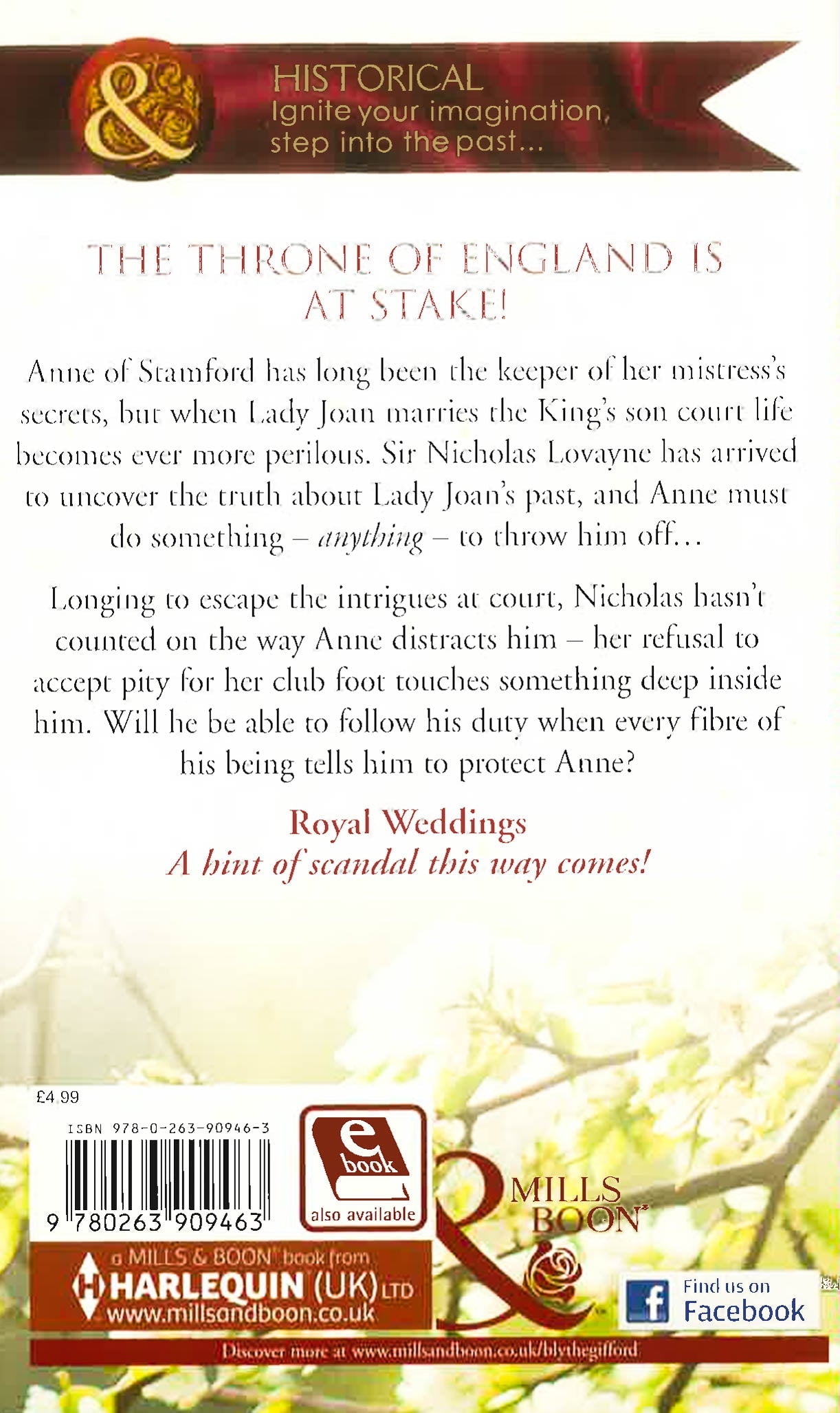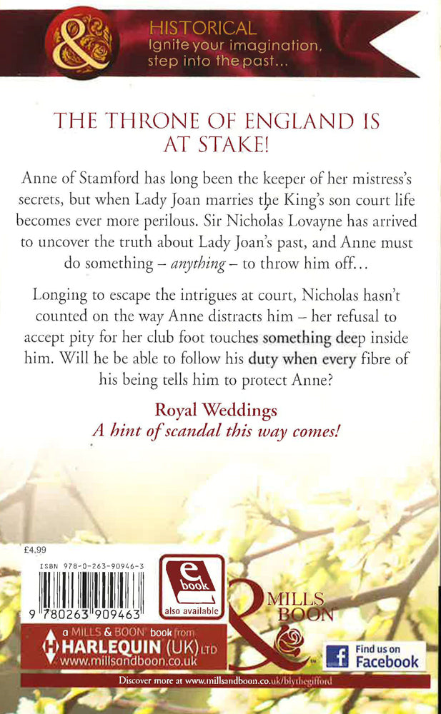 THE THRONE OF ENGLAND IS AT STAKE! THE THRONE OF ENGLAND IS AT STAKE! Anne of Stamford has long been the keeper of her mistress's secrets, but when Lady Joan marries the King's son court life becomes ever more perilous. Sir Nicholas Lovayne has arrived to uncover the truth about Lady Joan's past, and Anne must do something-anything-to throw him off... Longing to escape the intrigues at court, Nicholas hasn't counted on the way Anne distracts him-her refusal to accept pity for her club foot touches something deep inside him. Will he be able to follow his duty when every fibre of his being tells him to protect Anne?
