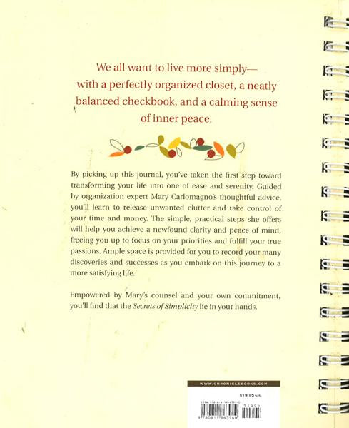Bulging in-boxes, out-of-control stress, and even climate change serve as reminders that when it comes to being happy and healthy, less is more. In this interactive journal, organization expert Mary Carlomagno leads readers on a journey toward release and discovery. Guided by the principle that the way you spend your time and money should reflect your true priorities, Secrets of Simplicity shows how to make practical changes to unburden your closets and calendars and make room for what's really important. Readers can record their successes, as they de-clutter their homes and in the process, their minds.