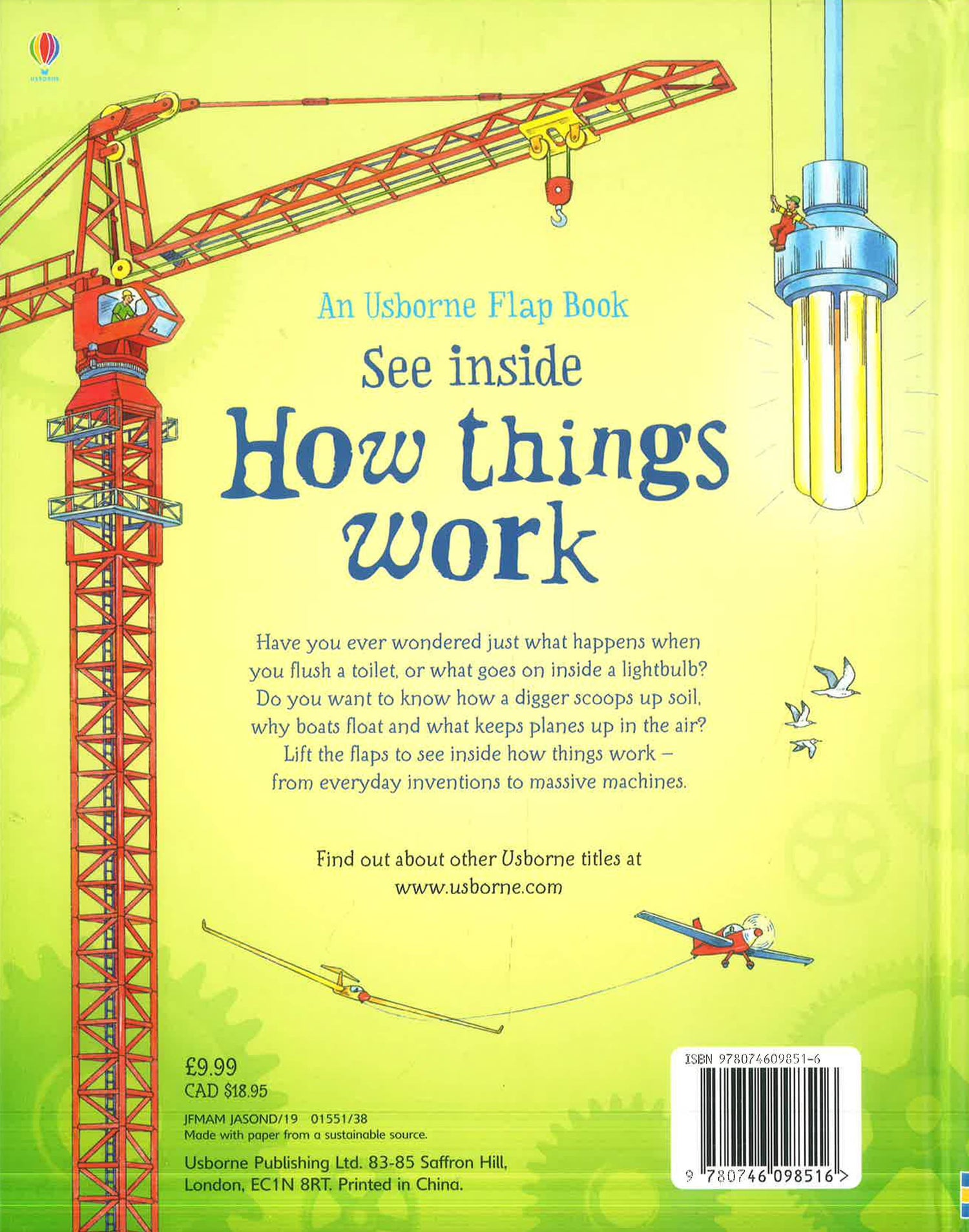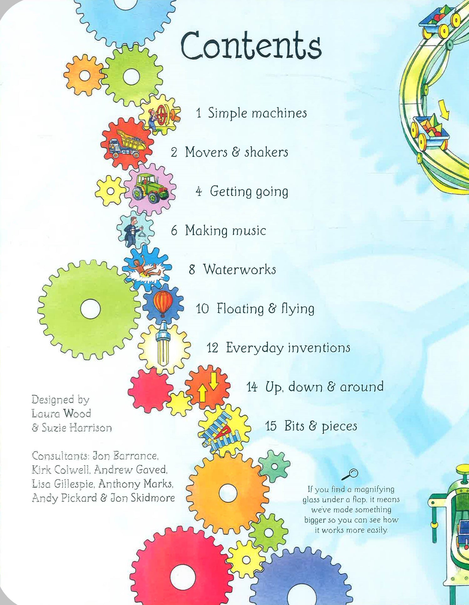 An amazing flap book packed with inventions, machines, gadgets and devices, and facts and information about how they work. Over 90 flaps reveal the insides of car engines, toilets, escalators, submarines and microwaves and many, many other machines. Includes internet links to websites with animations, games and experiments.