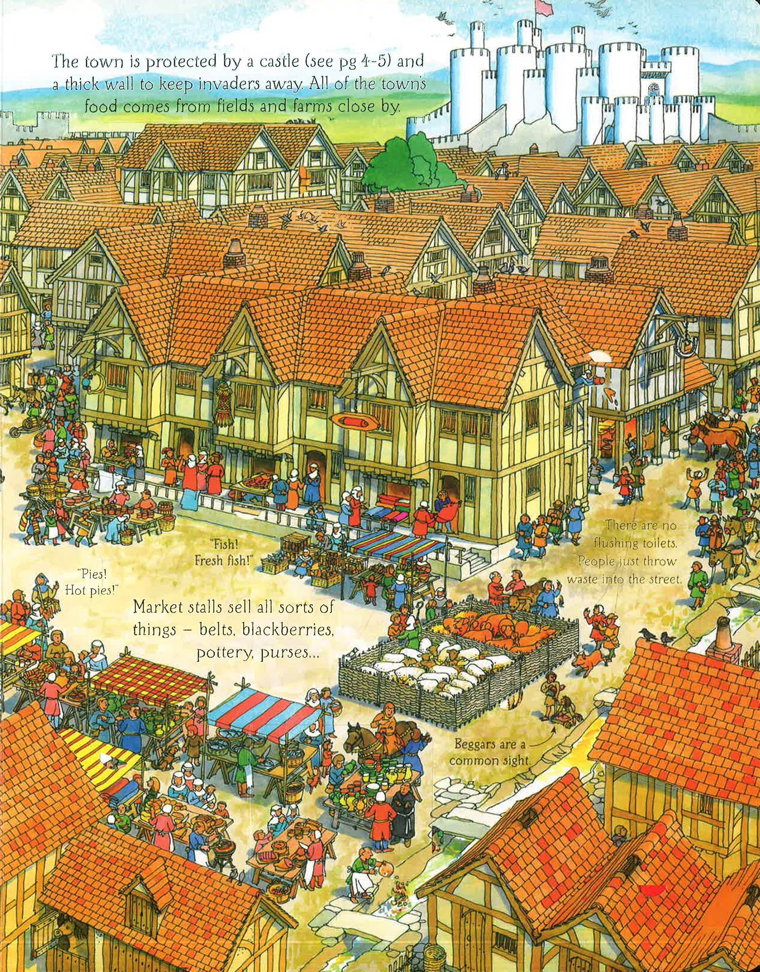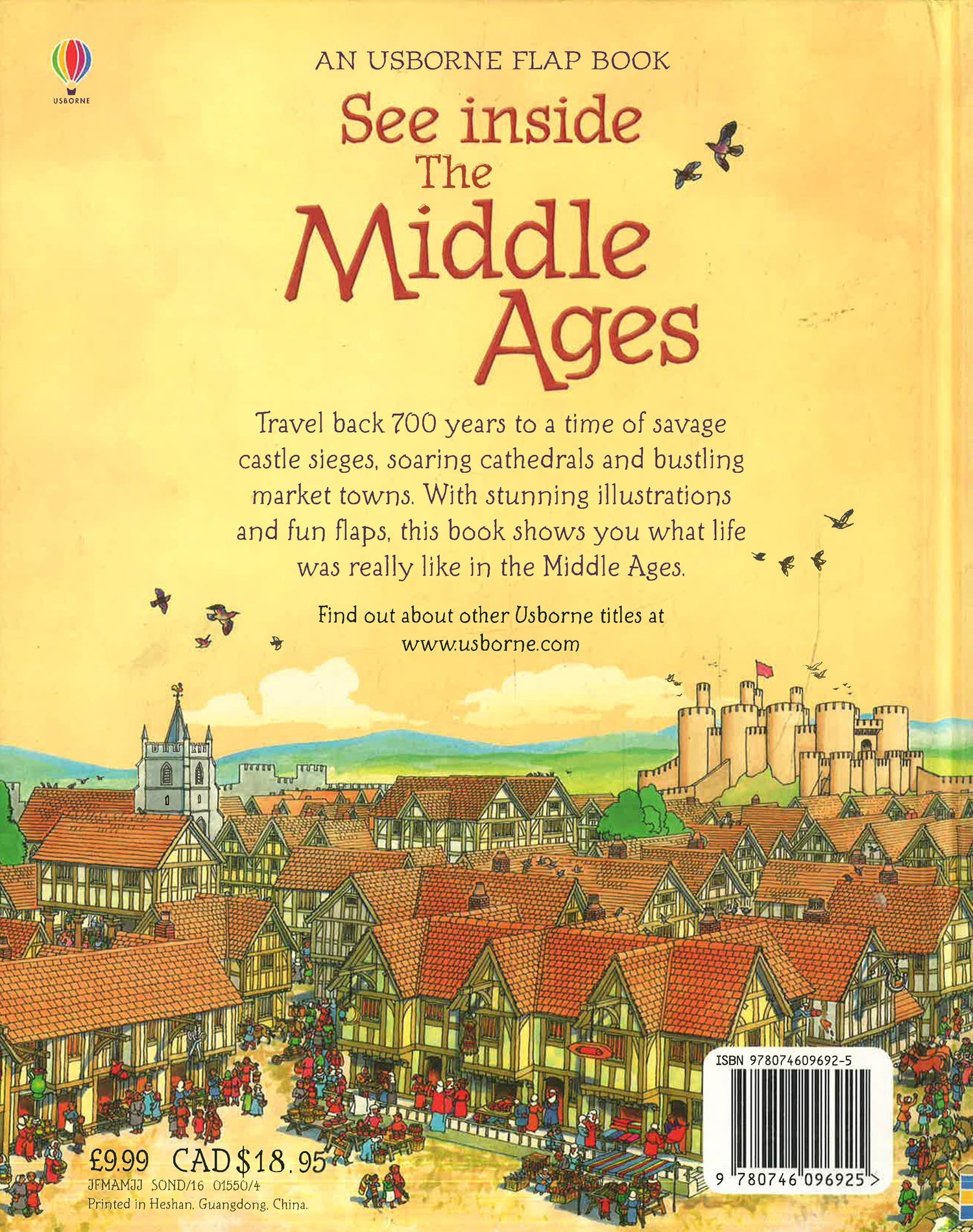 This is a fabulous flap book for older children showing what life was like in the 14th century. Stunning illustrations and over 80 flaps reveal fascinating historical facts of life in the Middle Ages. Scenes include a town market day, a lord's castle, a country village and a castle under siege. It includes an illustrated who's who in medieval society, a delightful small booklet on living in a castle and internet links to fun websites to find out more.