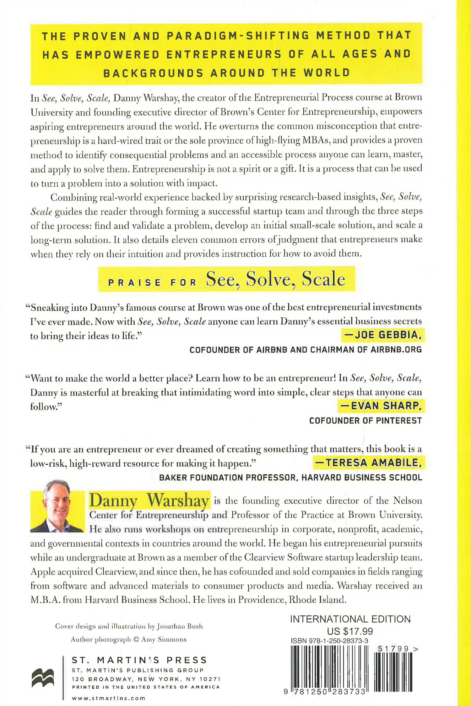 In See, Solve, Scale, Danny Warshay, the creator of the Entrepreneurial Process course and founding Executive Director of Brown's Center for Entrepreneurship, shares the same set of tools with aspiring entrepreneurs around the world. He overturns the common misconception that entrepreneurship is a hard-wired trait or the sole province of high-flying MBAs, and provides a proven method to identify consequential problems and an accessible process anyone can learn, master, and apply to solve them.