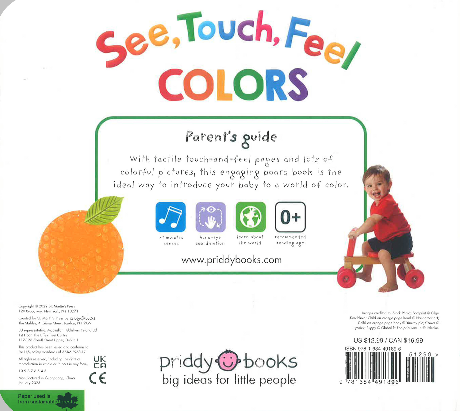 Part of the successfulSee, Touch, Feel series which has sold over 600,000 copies to date. Also available: See, Touch, Feel; See, Touch, Feel: ABC; See, Touch, Feel: 123; See, Touch, Feel: Noisy Book; See, Touch, Feel: Tummy Time; See, Touch, Feel: Play Book; See, Touch, Feel: Cloth book; See, Touch, Feel: Numbers; See, Touch, Feel: Farm; See, Touch, Feel: Words; See, Touch, Feel: Animals, and many more.