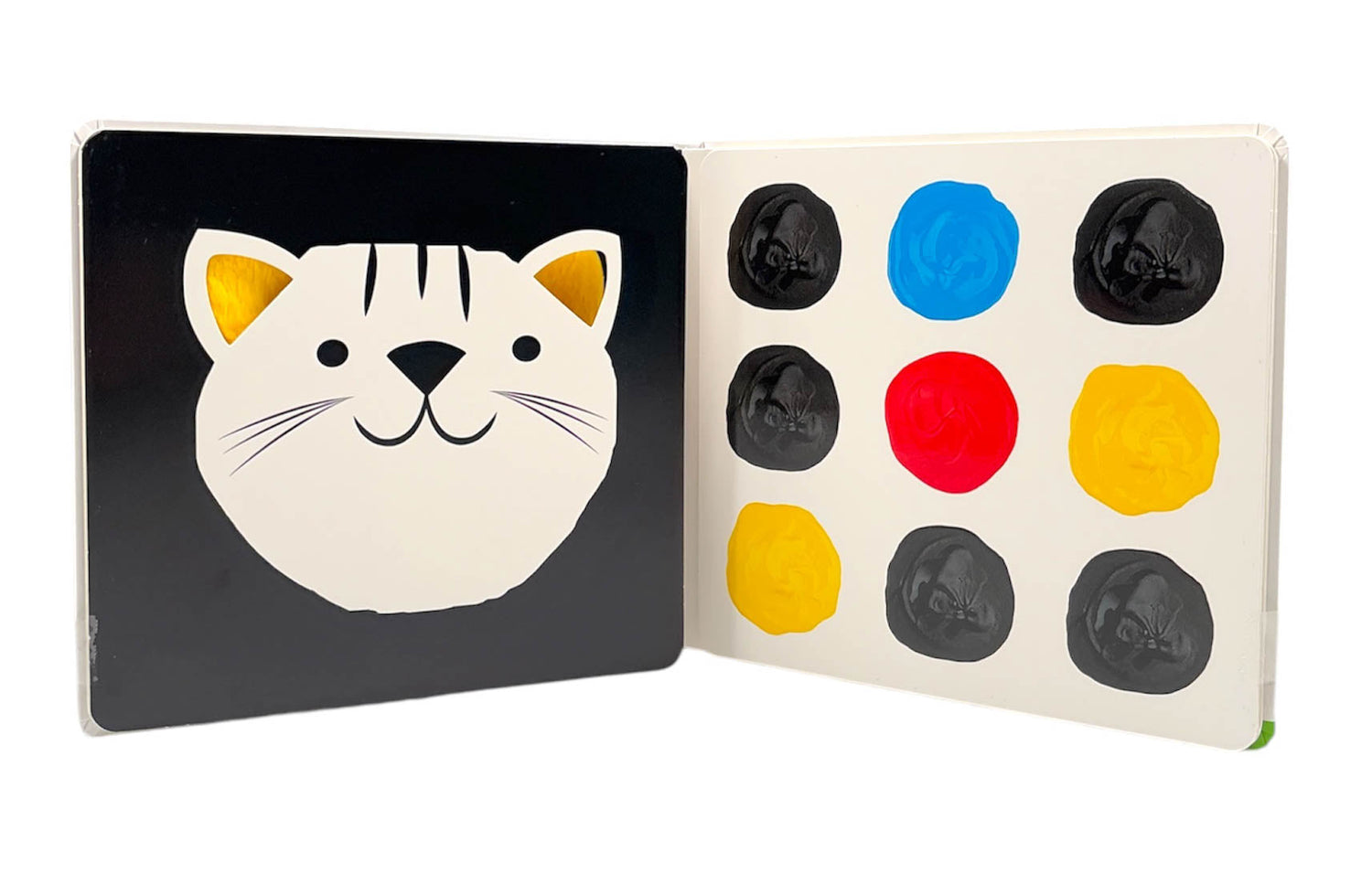 The book features a mix of black-and-white high contrast imagery, appealing photographs of happy babies, and bright colorful handprint artwork which the See Touch Feel series is best known for. The varied art style will engage and entertain babies as they get older.