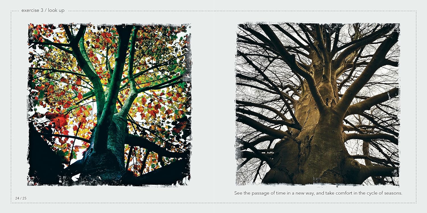 The quotes are from artists, Buddhists, philosophers, poets, and more, all centered on the theme of how “The real voyage of discovery consists not in seeking new landscapes, but in having new eyes” (Marcel Proust). The short, playful exercises and prompts—like Seeing in the Rain, Eye Spy with My Open I, Spend 30 Minutes Taking a Five-Minute Walk, Get Lost—are designed to disrupt routine and inspire readers to see for themselves. Some of the exercises involve drawing, writing, and taking photographs, opening a path to creativity as well as showing how to engage in the moment.