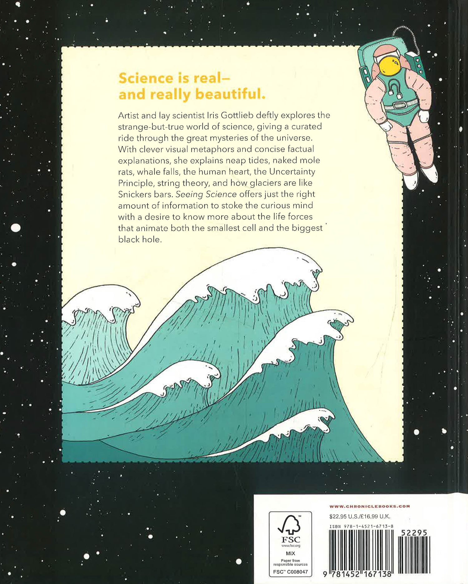 Science is beautiful. With original illustrations that deftly explain the strange-but-true world of science, Seeing Science brings the wonderful world of science to life in a quirky, indie style. Artist and lay scientist Iris Gottlieb explains the great mysteries of the universe, such as: neap tides, naked mole rats, whale falls, the human heart, the Uncertainty Principle, the ten dimensions of string theory, and how glaciers are like Snickers bars. Gottlieb's quirky visual metaphors and concise factual explanations provide just the right amount of information to stoke the curious mind with a desire to know more about the life forces that animate both the smallest cell and the biggest black hole.