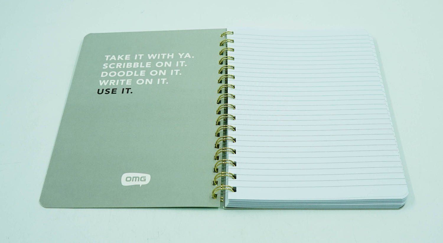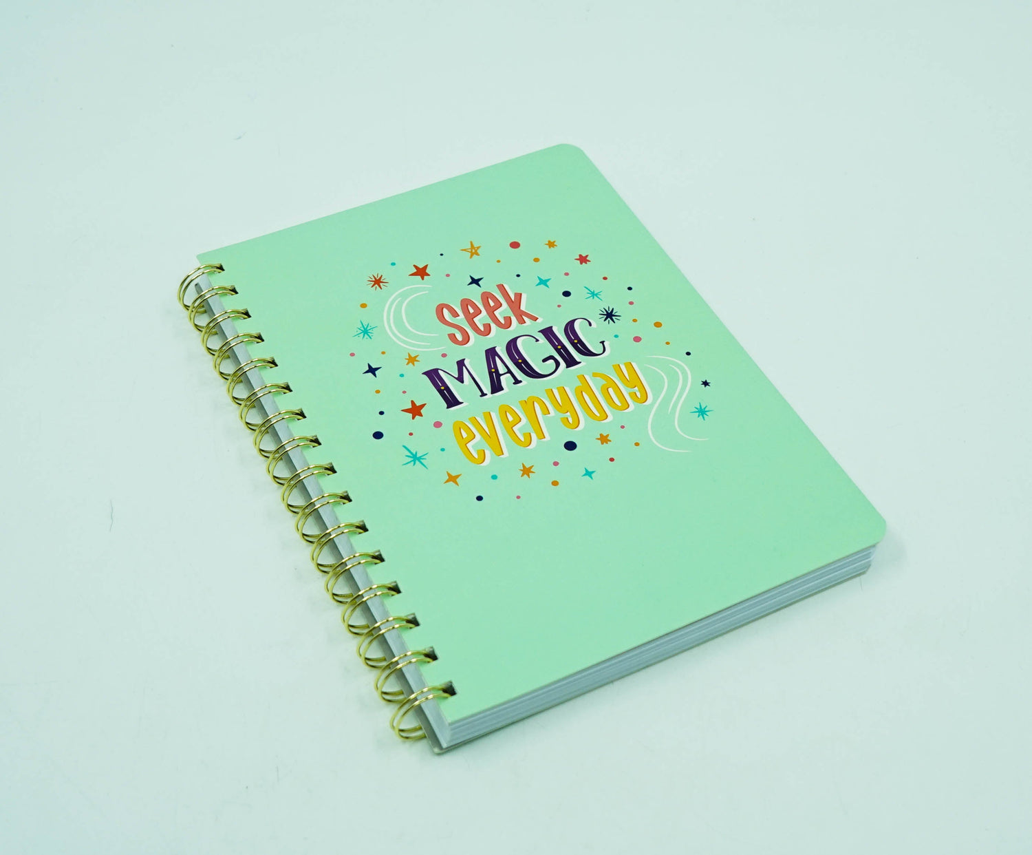 This beautiful notebook is the perfect size to slip in your bag and take with you on the go. Use it for meeting notes, daily inspirations, ideas, reminders and more. - Measurements: 216mm L x 153mm H / 6.1" x 8.5" - 160 lined pages & 80gsm simile paper - Spiral bound - Featuring spot UV lettering on cover