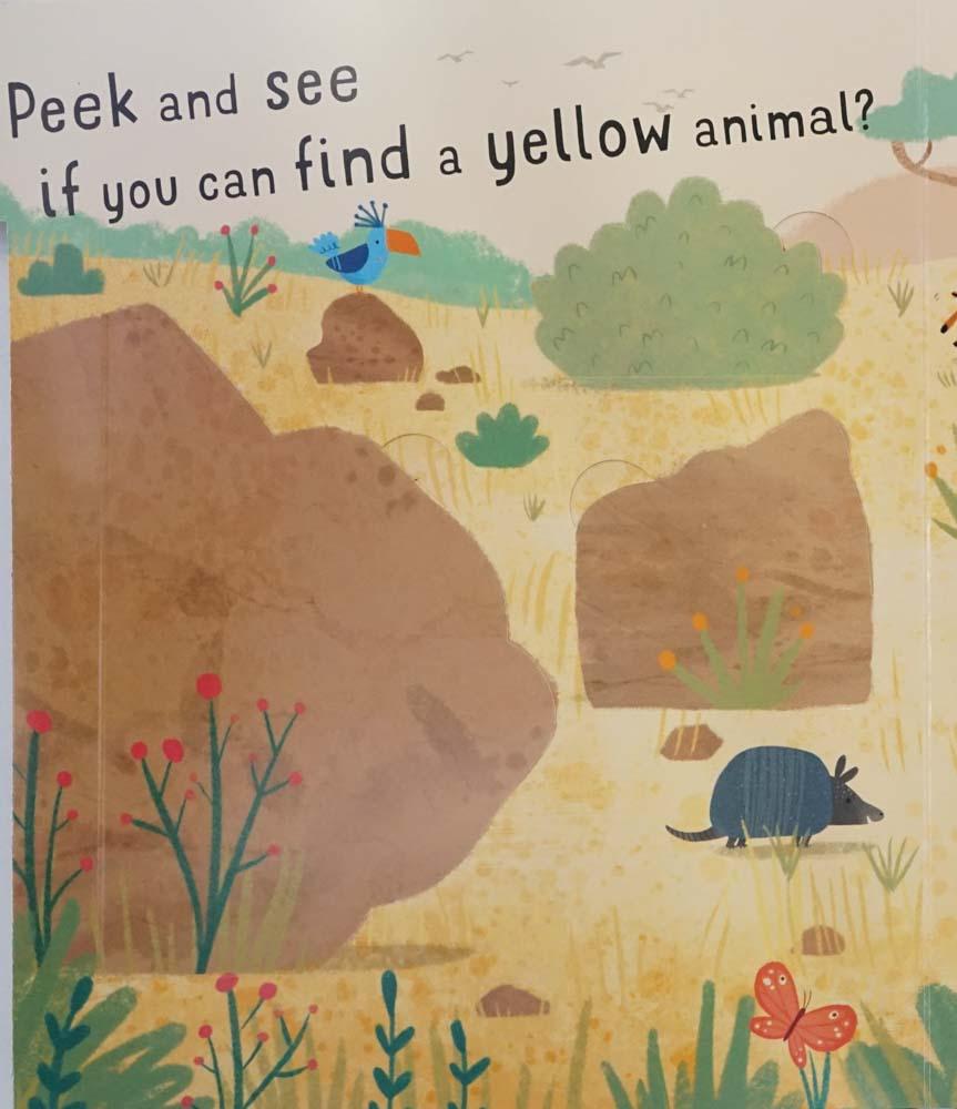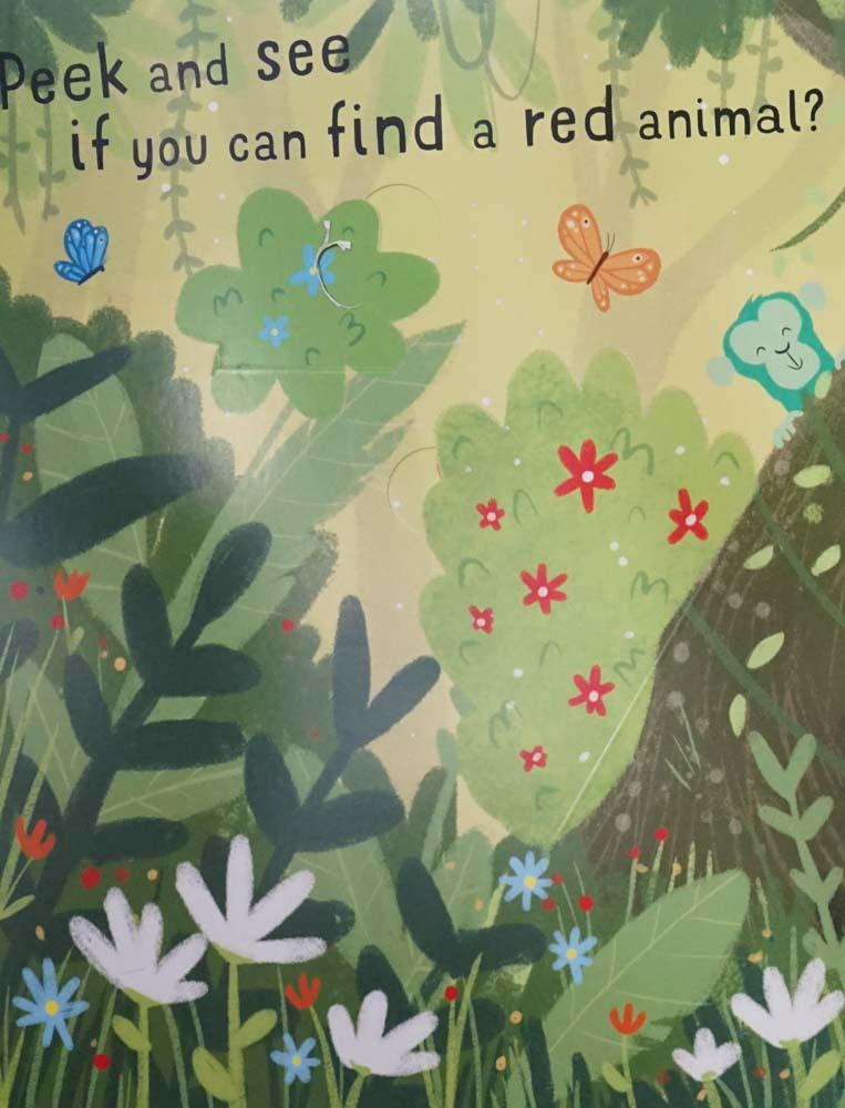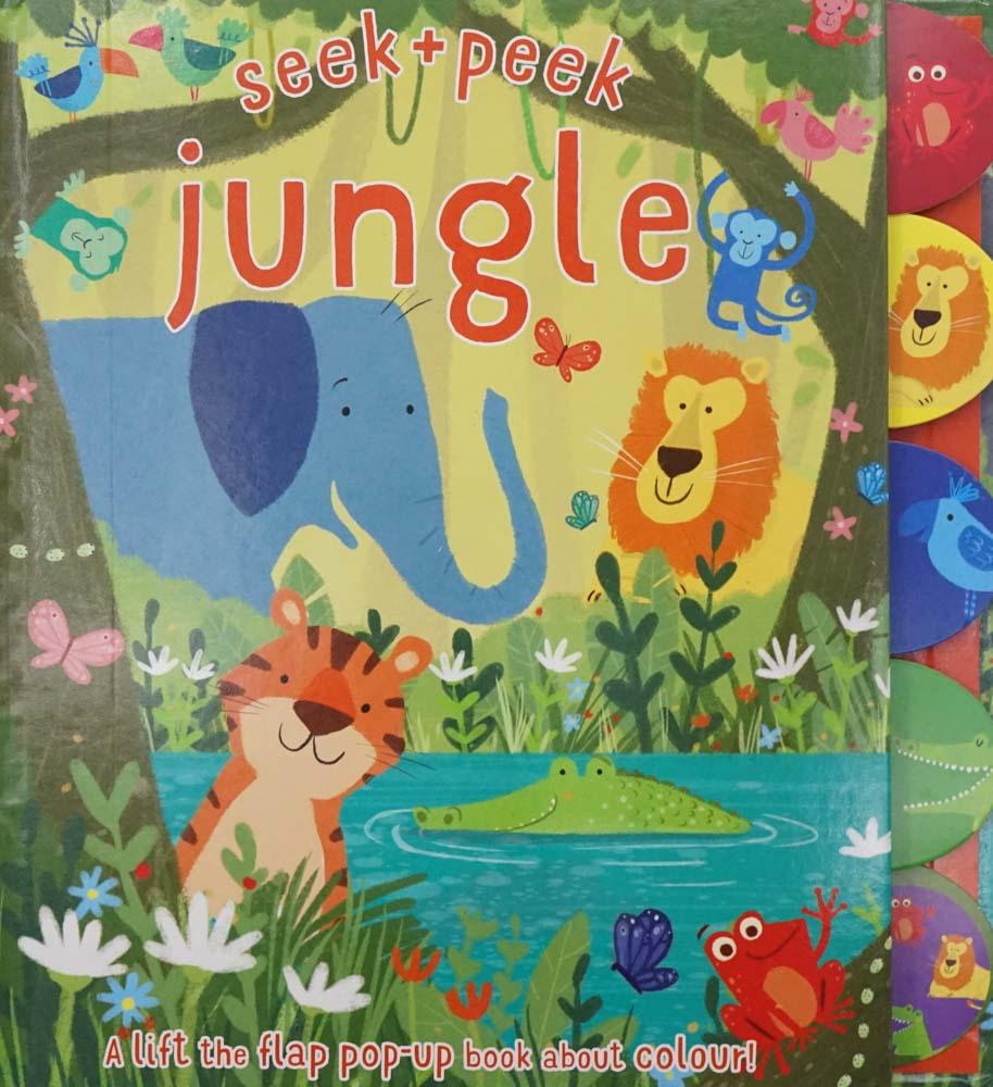 Seek + peek jungle has over 20 flaps and a supper pop-up at then end! Peek under each flap to search for the animals in the jungle and learn your colours along the way!