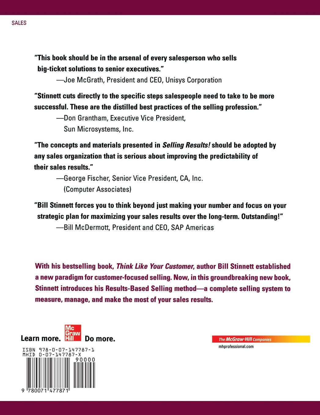 In Selling Results! Bill Stinnett, the bestselling author of Think Like Your Customer, takes his innovative sales philosophy to the next level by offering a complete sales system based on the belief that the best way to improve your sales results is to focus on helping your customers achieve their desired business results.