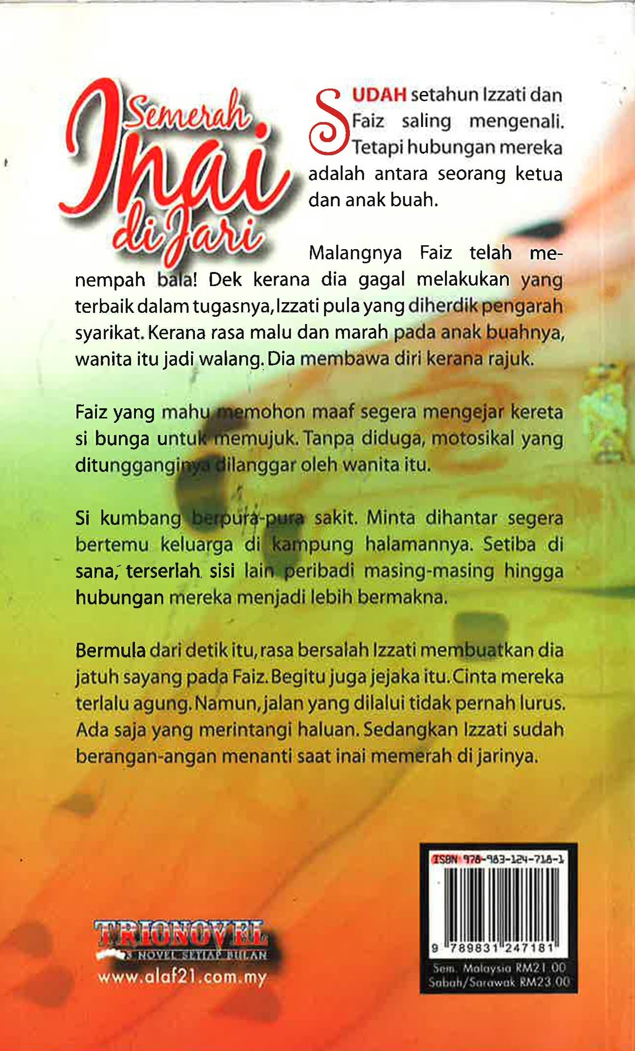 Faiz yang mahu memohon maaf segera mengejar kereta si bunga untuk memujuk. Tanpa diduga, motosikal yang ditunggangnya dilanggar oleh wanita itu. Si kumbang berpura-pura sakit yang teramat. Minta dihantar segera bertemu keluarga di kampung halamannya. Setiba di sana, terserlah sisi lain peribadi masing-masing hingga hubungan mereka menjadi lebih bermakna. Bermula dari detik itu, rasa bersalah Izzati membuatkan dia jatuh sayang pada Faiz. Begitu juga jejaka itu. Cinta mereka terlalu agung. Namun, jalan yang dilalui tidak pernah lurus. Ada saja yang merintangi haluan. Sedangkan Izzati sudah memasang angan-angan menanti saat inai memerah di jarinya.