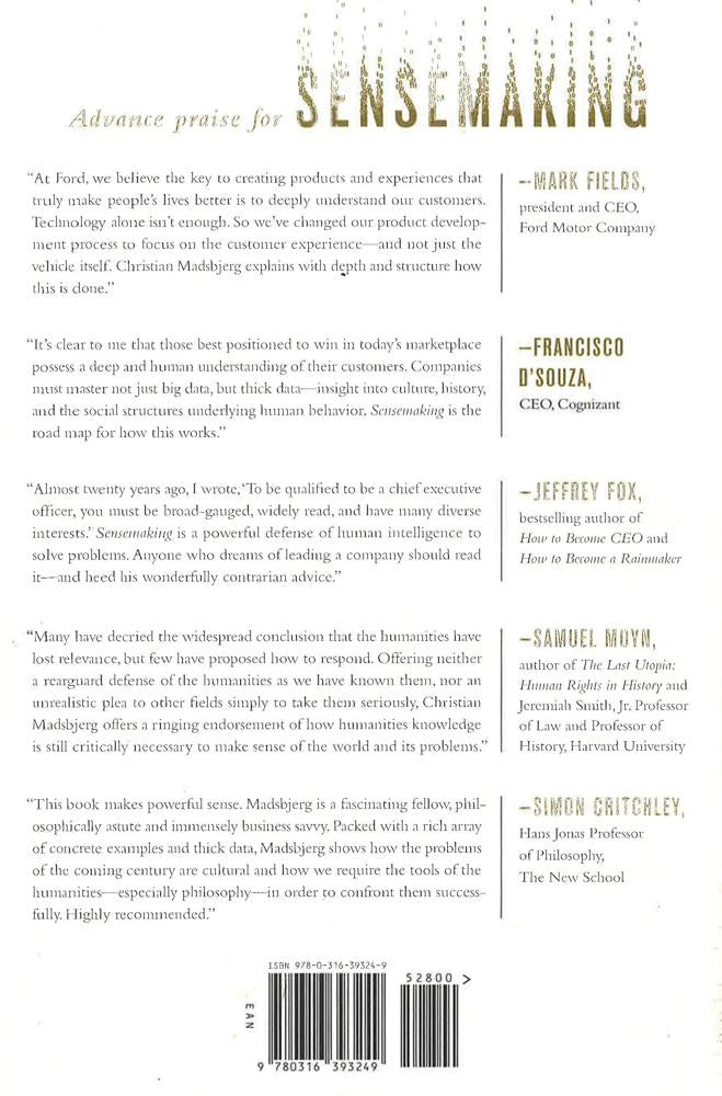 Based on his work at some of the world's largest companies, including Ford, Adidas, and Chanel, Christian Madsbjerg's Sensemaking is a provocative stand against the tyranny of big data and scientism, and an urgent, overdue defense of human intelligence.
