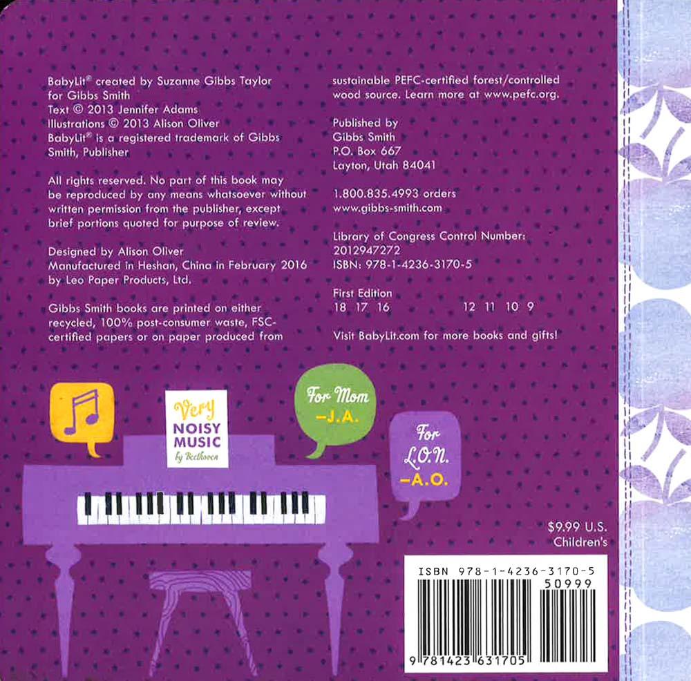 JENNIFER ADAMS is the author of more than 30 books, including board books in the best-selling BabyLit series which introduce young children to the world of classic literature. Jennifer works as a writer and editor in Salt Lake City, Utah. Visit her website at jennifer-adams.com.
