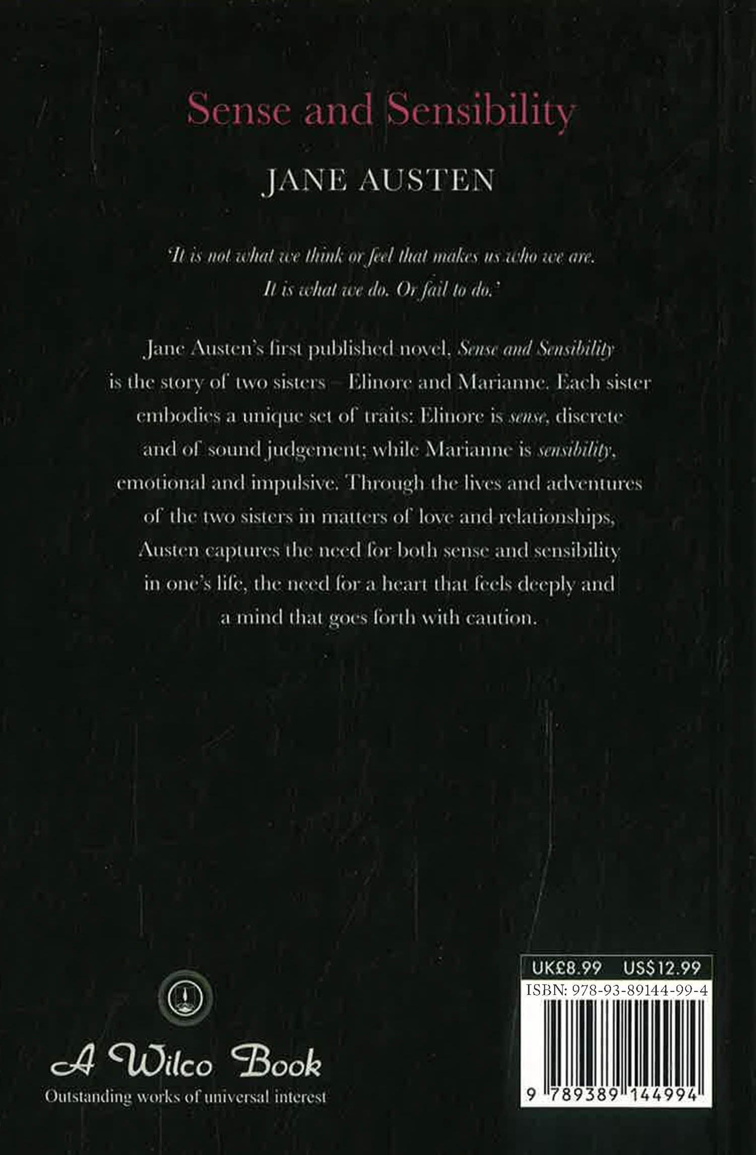 ‘It is not what we think or feel that makes us who we are. It is what we do. Or fail to do.’ Jane Austen’s first published novel, Sense and Sensibility is the story of two sisters – Elinore and Marianne. Each sister embodies a unique set of traits: Elinore is sense, discrete and of sound judgement; while Marianne is sensibility, emotional and impulsive. Through the lives and adventures of the two sisters in matters of love and relationships, Austen captures the need for both sense and sensibility in one’s life, the need for a heart that feels deeply and a mind that goes forth with caution.