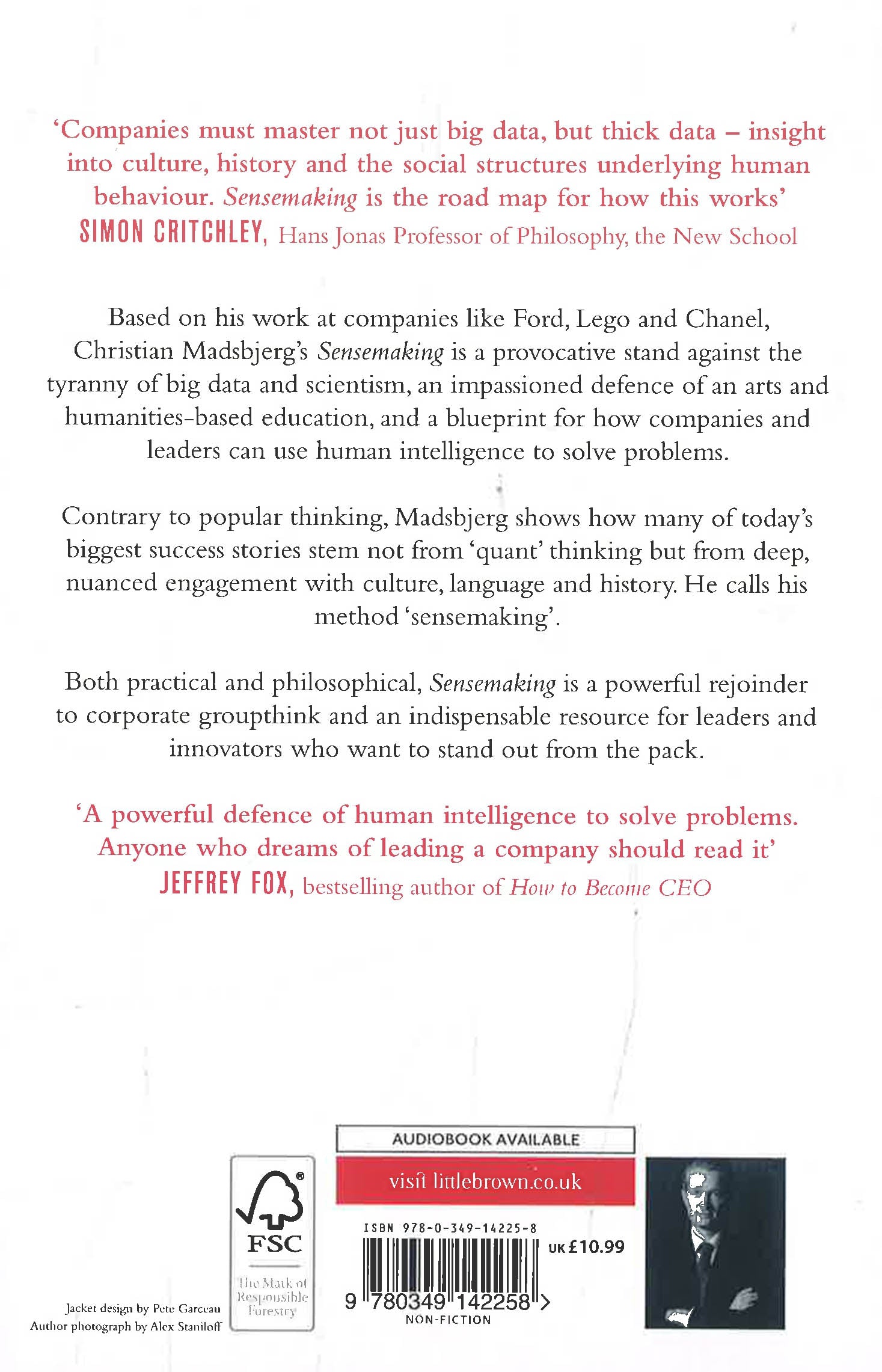 A FINANCIAL TIMES BUSINESS BOOK OF THE MONTH (APRIL 2017) Humans have become subservient to algorithms. Every day brings a new Moneyball fix - a maths whiz who will crack open an industry with clean fact-based analysis rather than human intuition and experience. As a result, we have stopped thinking. Machines do it for us. Christian Madsbjerg argues that our fixation with data often masks stunning deficiencies, and the risks for humankind are enormous. Blind devotion to number crunching imperils our businesses, our educations, our governments, and our life savings. Too many companies have lost touch with the humanity of their customers, while marginalising workers with arts-based skills. Contrary to popular thinking, Madsbjerg shows how many of today's biggest success stories stem not from 'quant' thinking but from deep, nuanced engagement with culture, language, and history. He calls his method sensemaking. In this landmark book, Madsbjerg lays out five principles for how business leaders, entrepreneurs, and individuals can use it to solve their thorniest problems. He profiles companies using sensemaking to connect with new customers, and takes readers inside the work process of sensemaking 'connoisseurs' like investor George Soros, architect Bjarke Ingels, and others. Both practical and philosophical, Sensemaking is a powerful rejoinder to corporate groupthink and an indispensable resource for leaders and innovators who want to stand out from the pack.