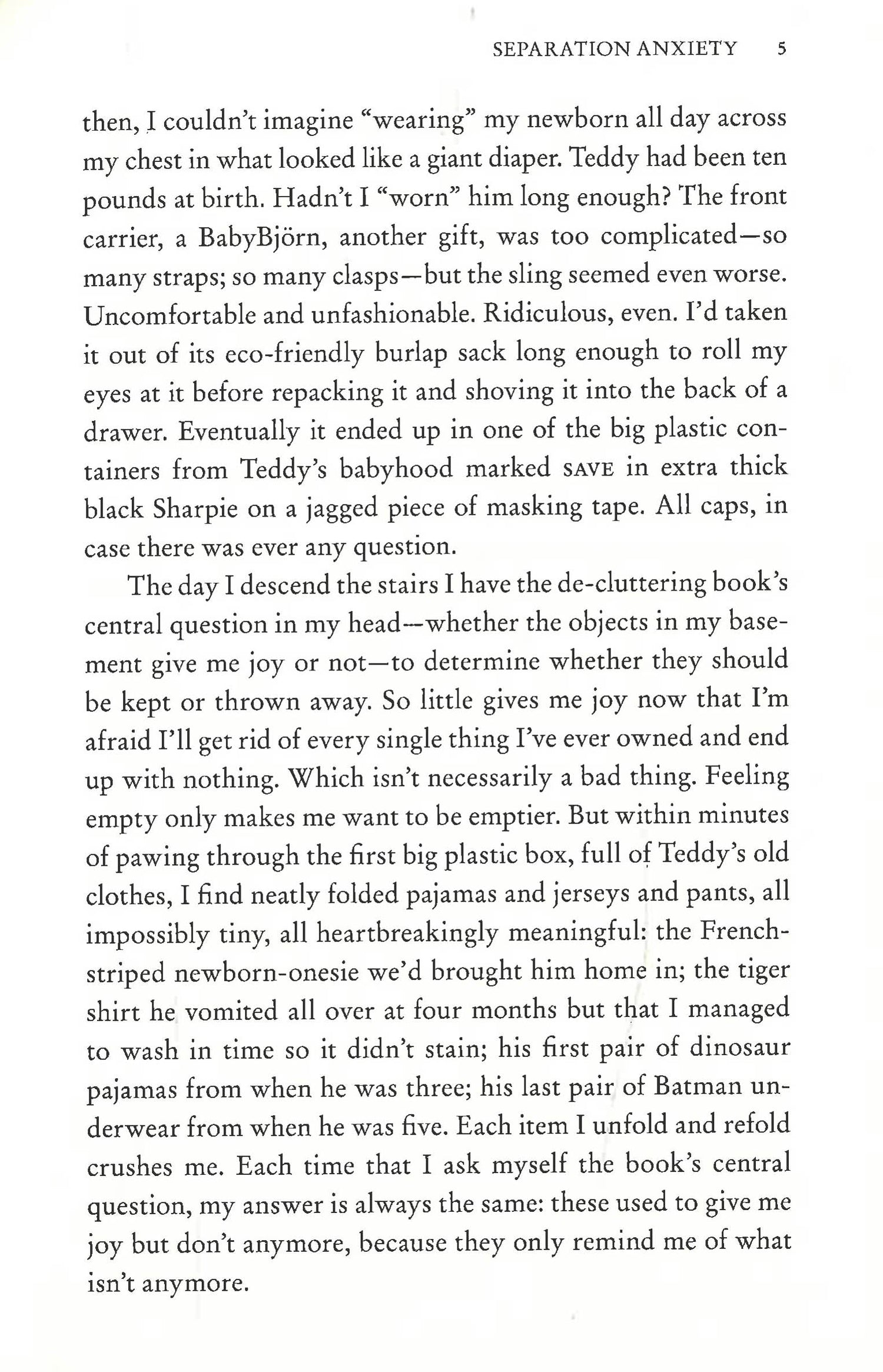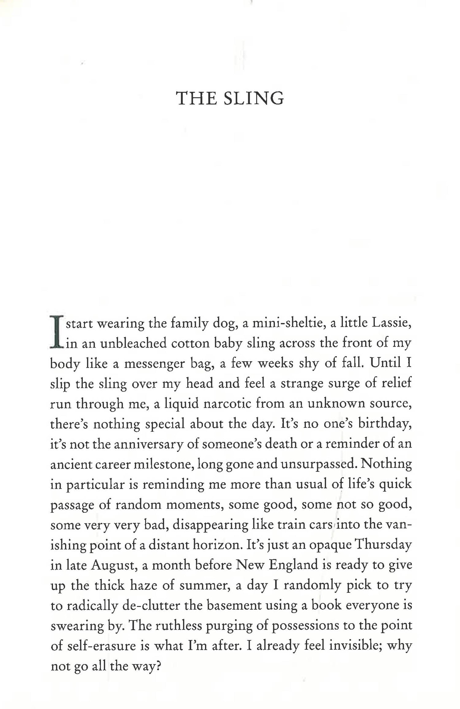Judy never intended to start wearing the dog. But when she stumbled across her son Teddy's old baby sling during a halfhearted basement cleaning, something in her snapped. So: the dog went into the sling, Judy felt connected to another living being, and she's repeated the process every day since.