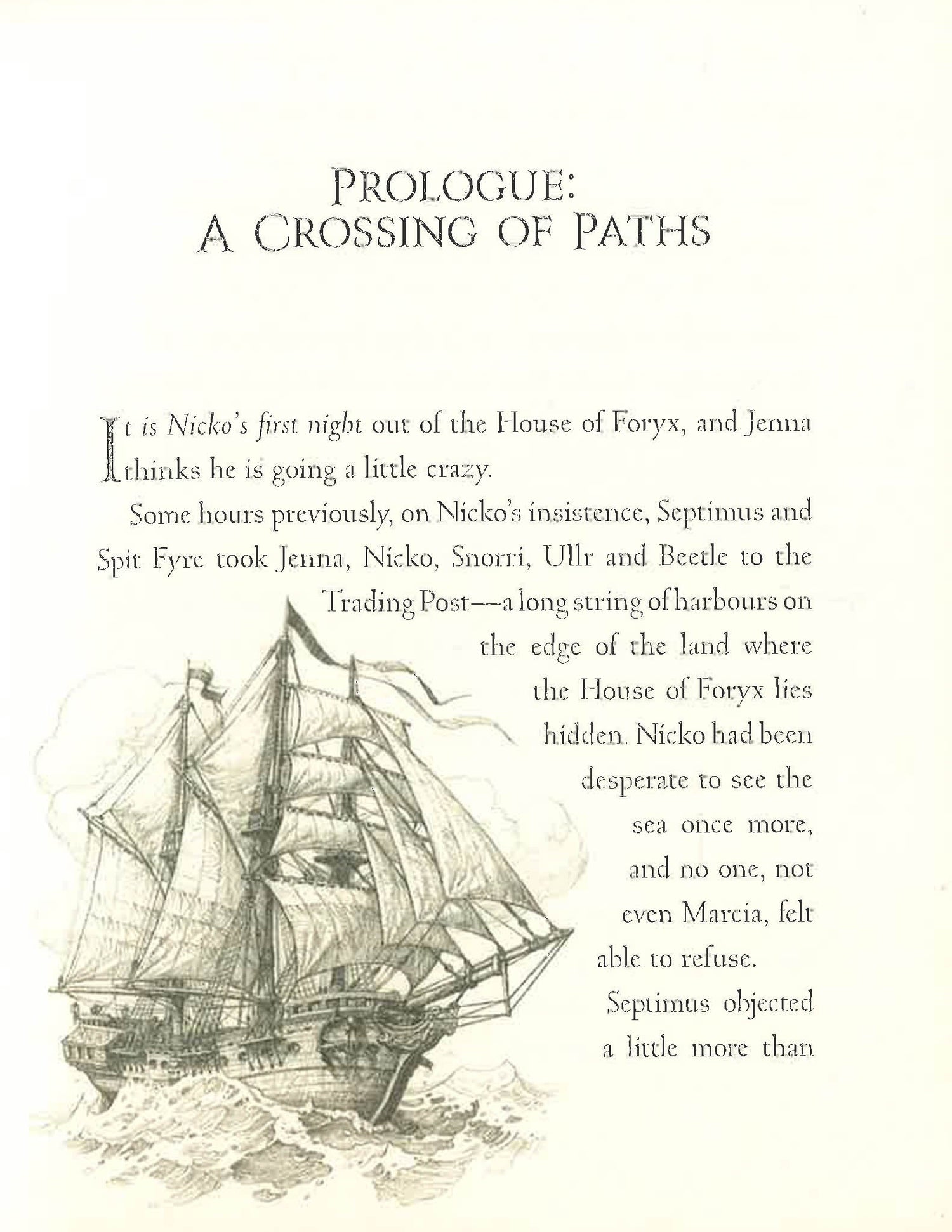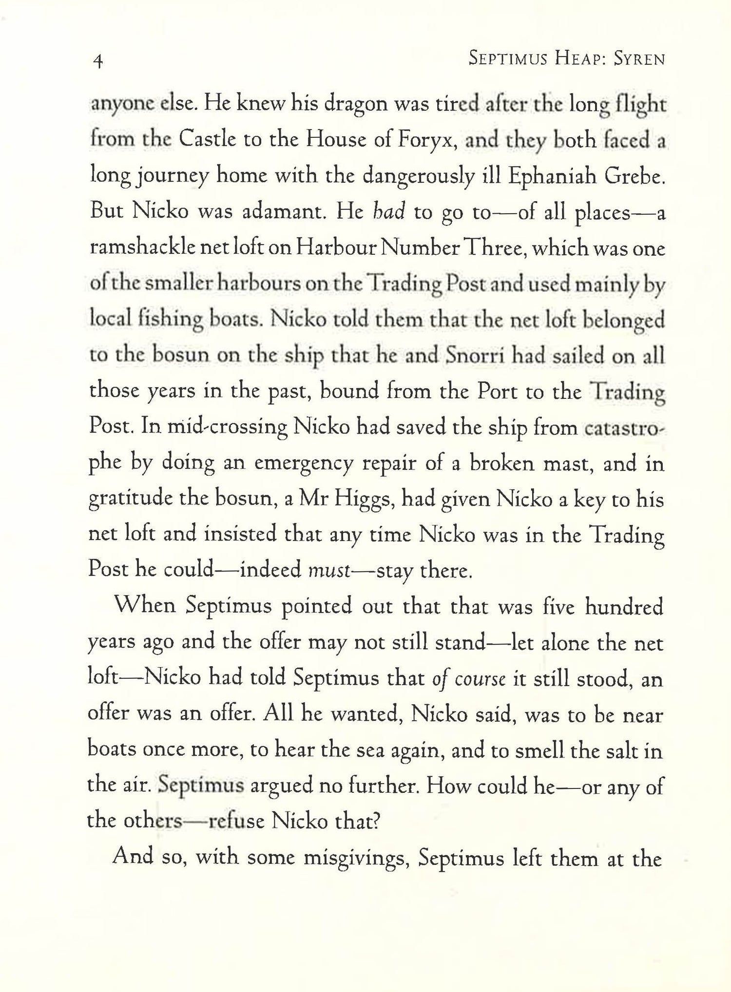 In the fifth book of this Magykal series, Septimus and his friends find themselves on an island whose secrets are as dark and dangerous as its inhabitants. Septimus Heap returns to the House of Foryx with Spit Fyre to pick up Jenna, Nicko, Snorri, and Beetle. But the journey home does not go well and when Septimus and his friends are caught in a storm, Spit Fyre crashes into the Rokk Lighthouse. They are rescued by the lighthouse keeper who is disturbingly sinister, and who has an equally sinister cat And all the while, Septimus is trying to fight the strange pull he's feeling to the island and its mysterious secrets.