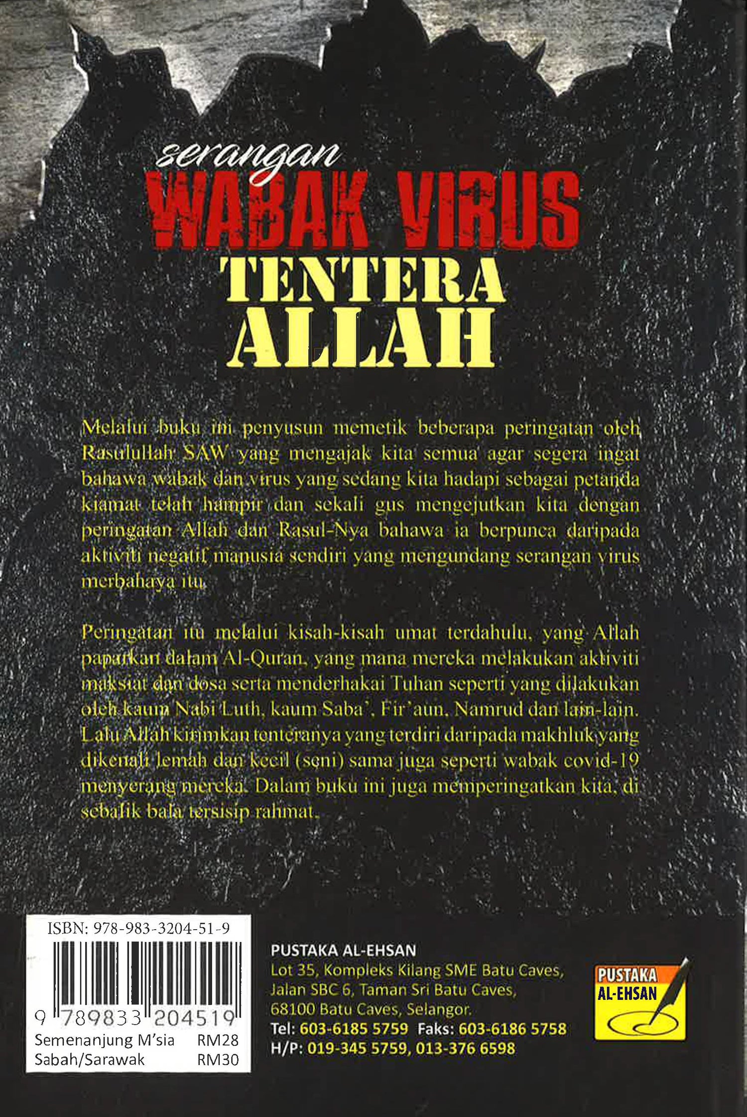 Melalui buku ini penyusun memetik beberapa peringatan oleh Rasulullah SAW yang mengajak kita semua agar segera ingat bahawa wabak dan virus yang sedang kita hadapi sebagai petanda kiamat telah hampir dan sekali gus mengejutkan kita dengan peringatan Allah dan Rasul-Nya bahawa ia berpunca daripada aktiviti negatif manusia sendiri yang mengundang serangan virus merbahaya itu.