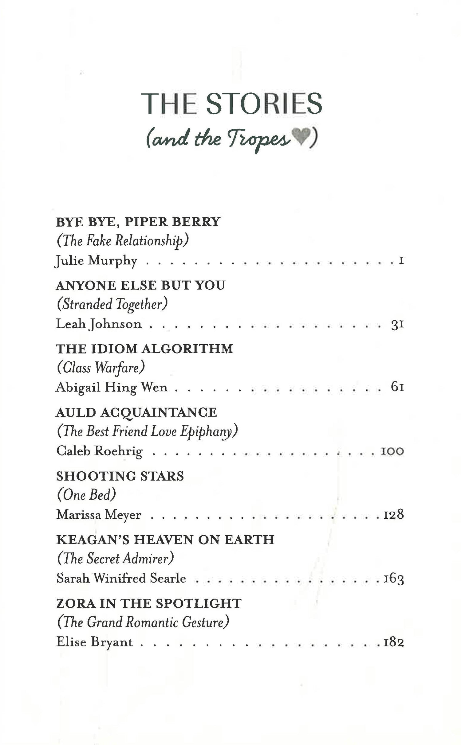 Love is in the air in this is a collection of stories inspired by romantic tropes and edited by #1 New York Times-bestselling author of Gilded, Marissa Meyer. The secret admirer. The fake relationship. The matchmaker. From stories of first love, unrequited love, love that surprises, love that's been there all along, ten of the brightest and award-winning authors writing YA have taken on some of your favourite romantic tropes, embracing them and turning them on their heads. Readers will swoon for this collection of stories that celebrate love at its most humorous, inclusive, heart-expanding and serendipitous. Contributors include Elise Bryant, Elizabeth Eulberg, Leah Johnson, Anna-Marie McLemore, Marissa Meyer, Sandhya Menon, Julie Murphy, Caleb Roehrig, Sarah Winifred Searle and Abigail Hing Wen.