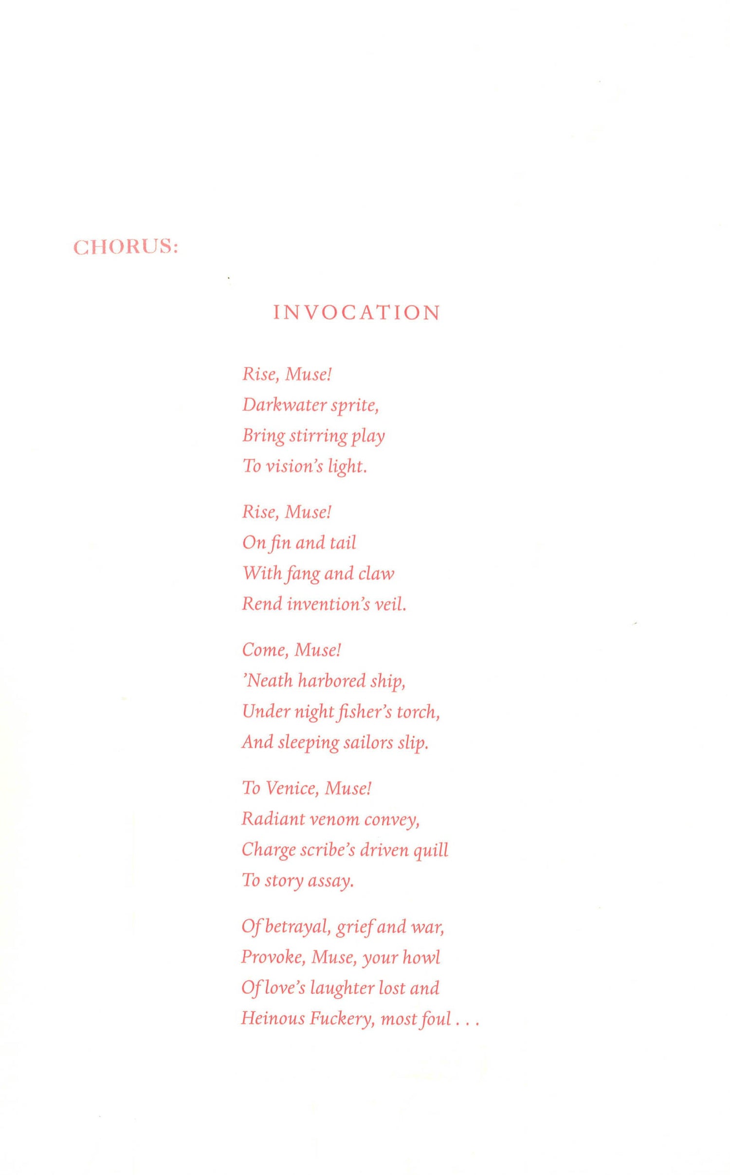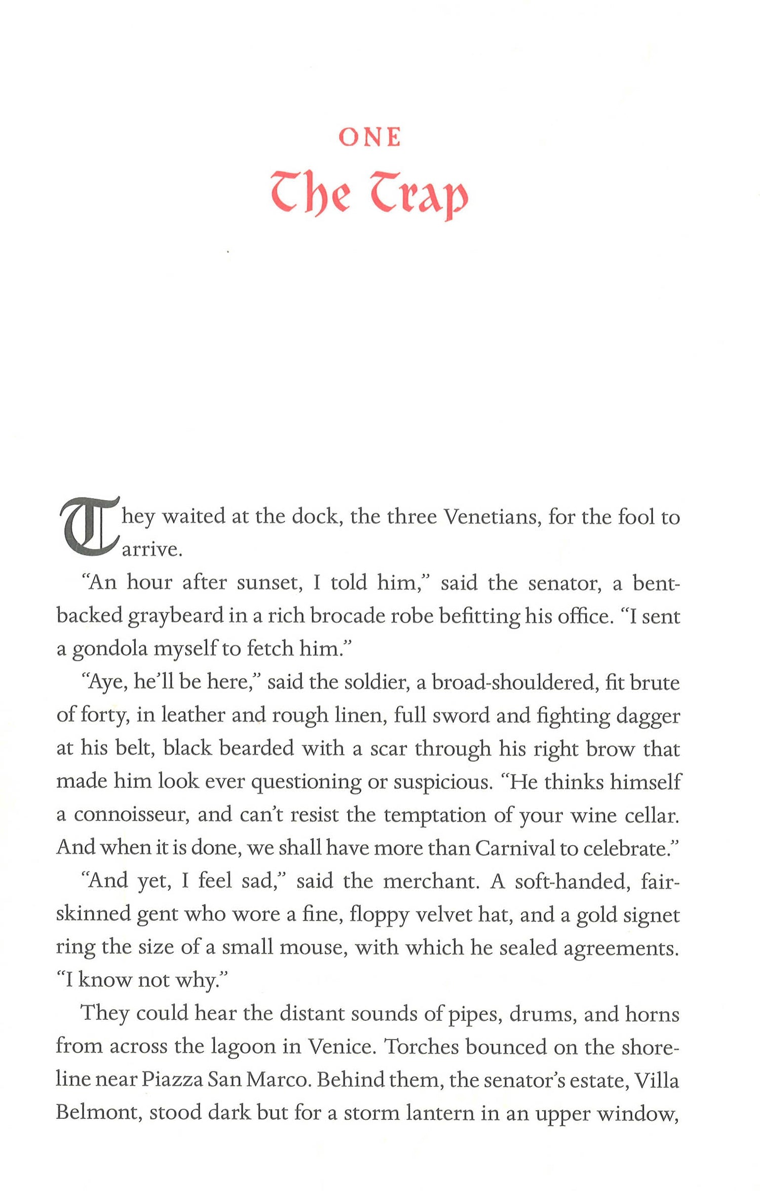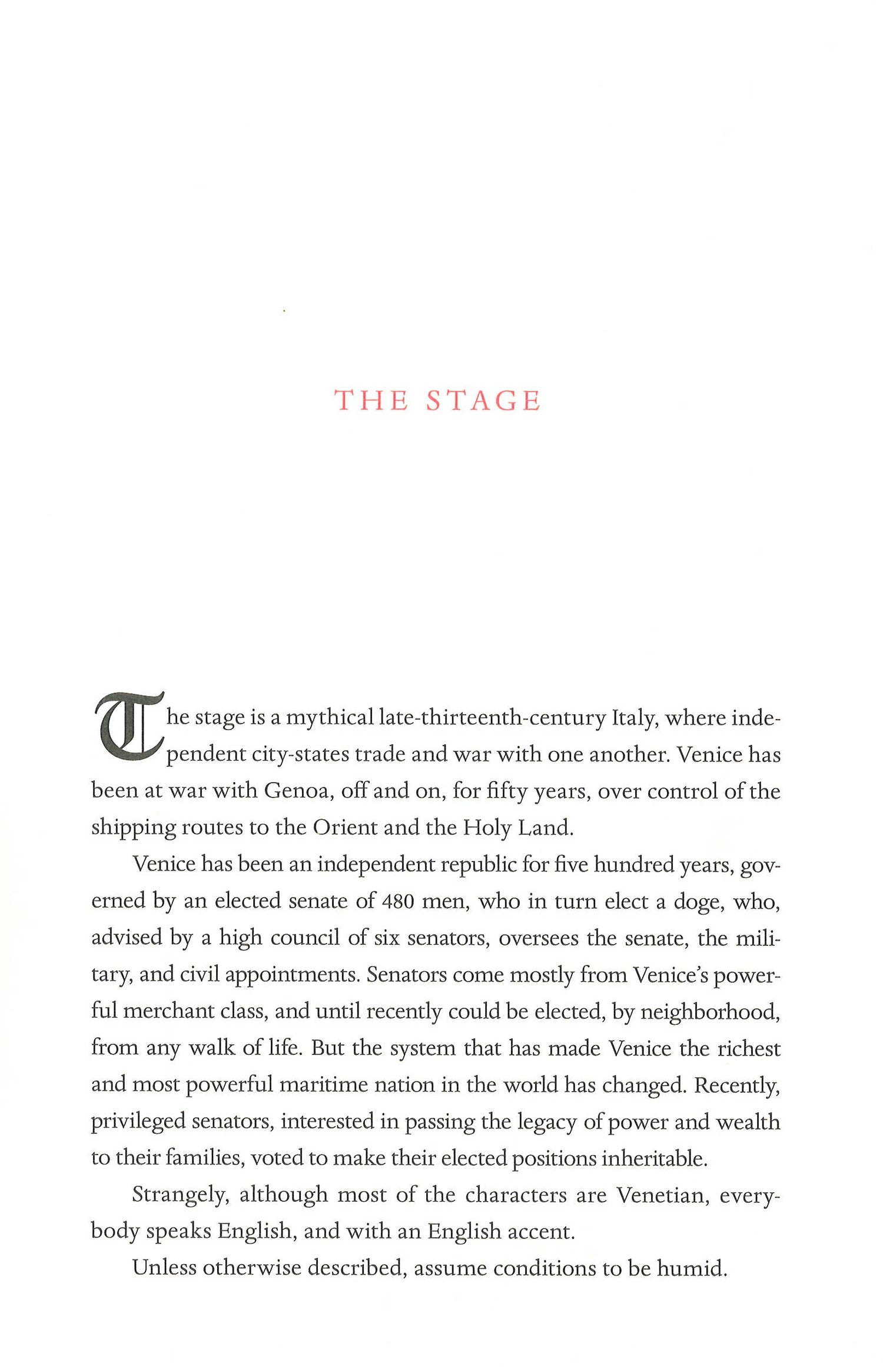 Venice, a long time ago. Three prominent Venetians await their most loathsome and foul dinner guest, the erstwhile envoy from the Queen of Britain: the rascal-Fool Pocket.