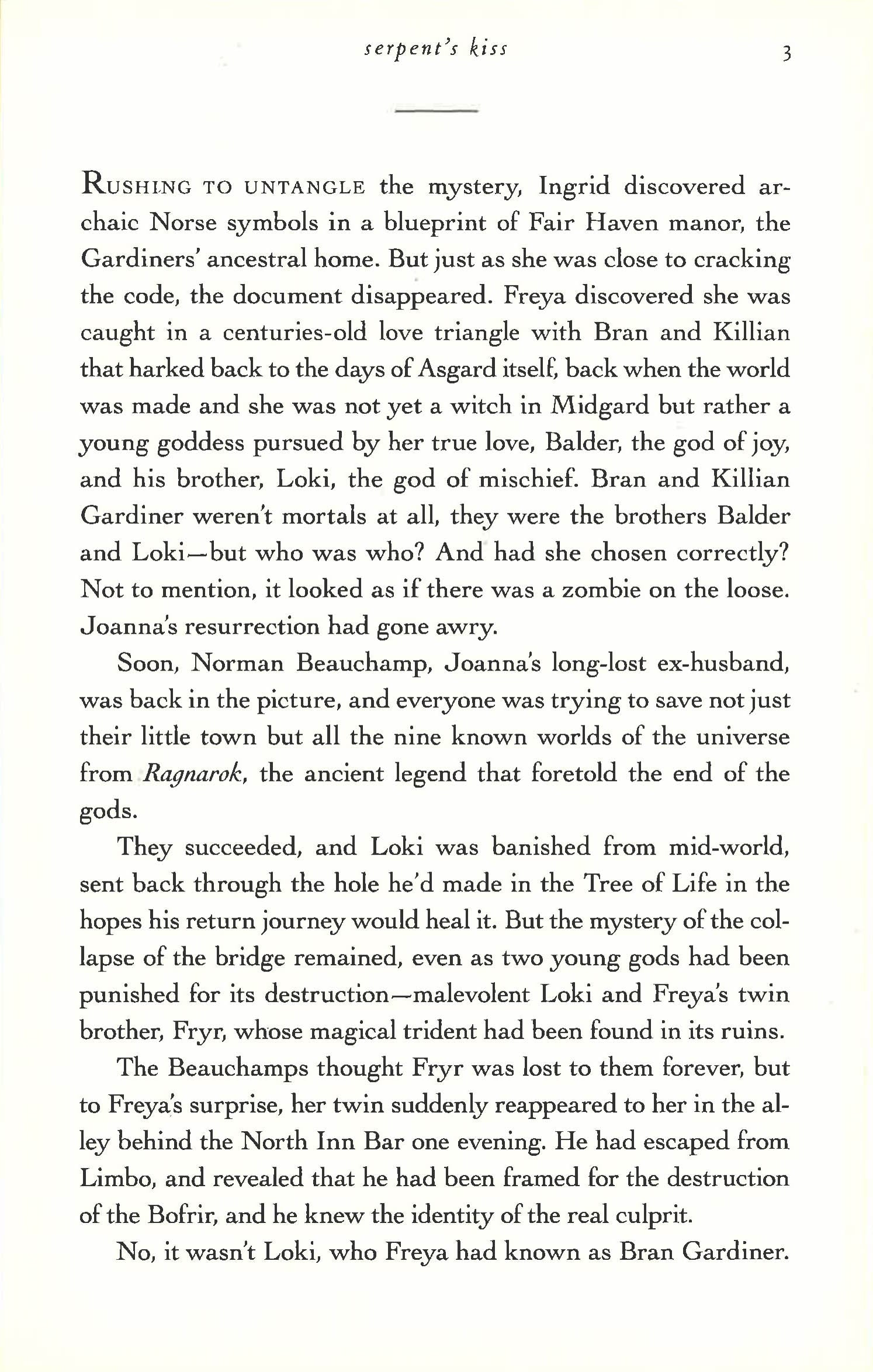 The basis for the hit Lifetime TV series, Witches of East End! The intriguing Beauchamp family, introduced in the New York Times bestselling Witches of East End, returns in Serpent's Kiss, with dizzying plot twists and spellbinding magic. Joanna and her daughters, bookish Ingrid and wild-child Freya, are just settling into the newfound peace that has been cast over their small, off-the-map coastal town of North Hampton. With the centuries-old restriction against practicing magic lifted, casting spells, mixing potions, and curing troubled souls has never felt so good for the three witches. That is, until everything gets turned upside down. It all begins when Freya's twin, Freddie, suddenly returns, professing innocence on a long-ago crime and blaming Freya's fiancé. Torn between brother and lover, Freya doesn't know who to trust. And, for the first time, Ingrid is in love with a charming detective. But can romance work between a virgin witch and a mortal who doesn't believe in magic? To add to the chaos, a dead spirit is attempting to make contact with Joanna - but does it mean to bring harm or help? As the witches pull together to discover the culprit behind Freddie's imprisonment, everything is thrown into peril. Will the discovery come too late to save those they love most?