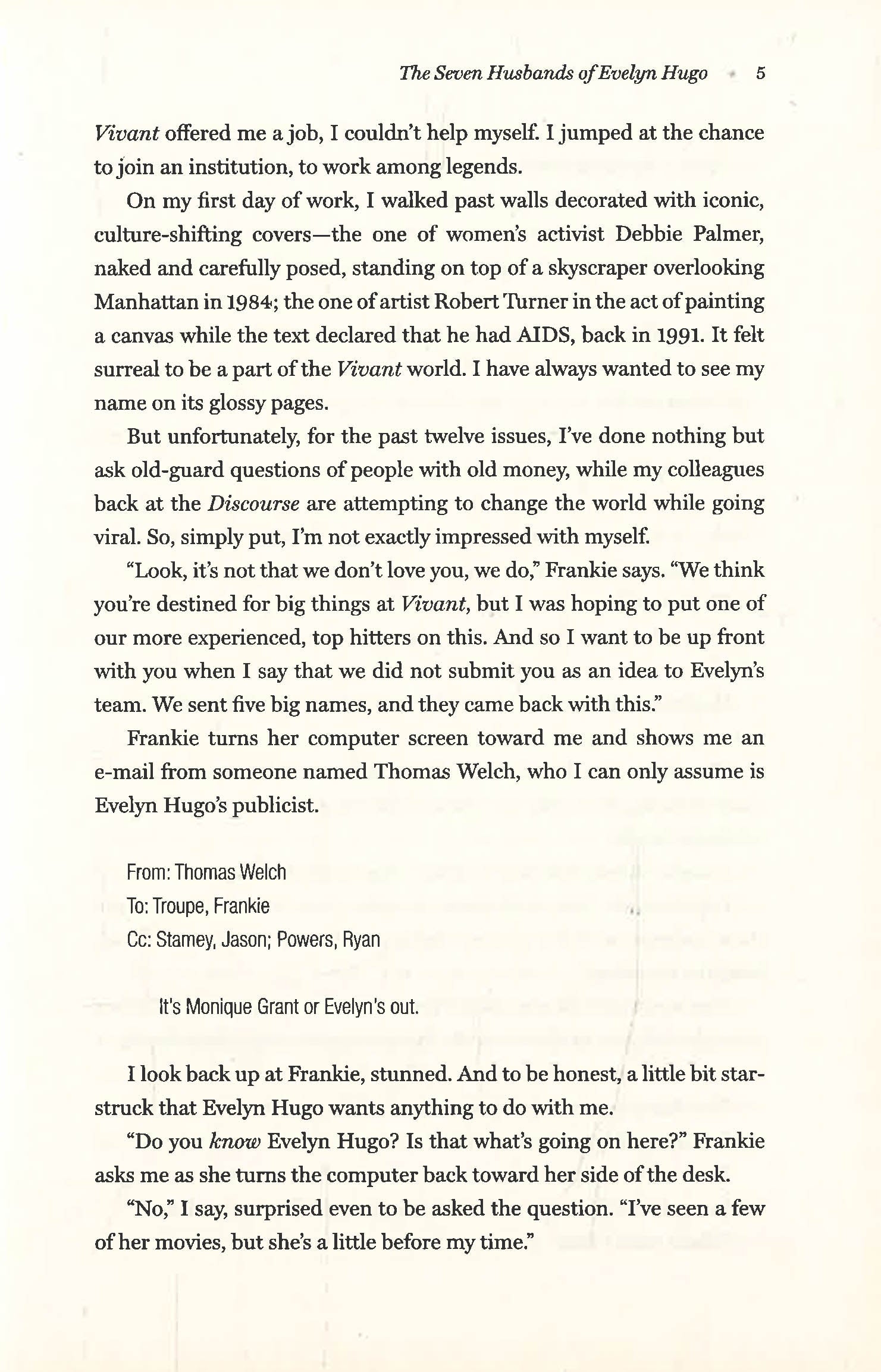 Reclusive Hollywood movie icon Evelyn Hugo is finally ready to tell the truth about her glamorous and scandalous life. But when she chooses unknown magazine reporter Monique Grant for the job, no one is more astounded than Monique herself. Why her? Why now?