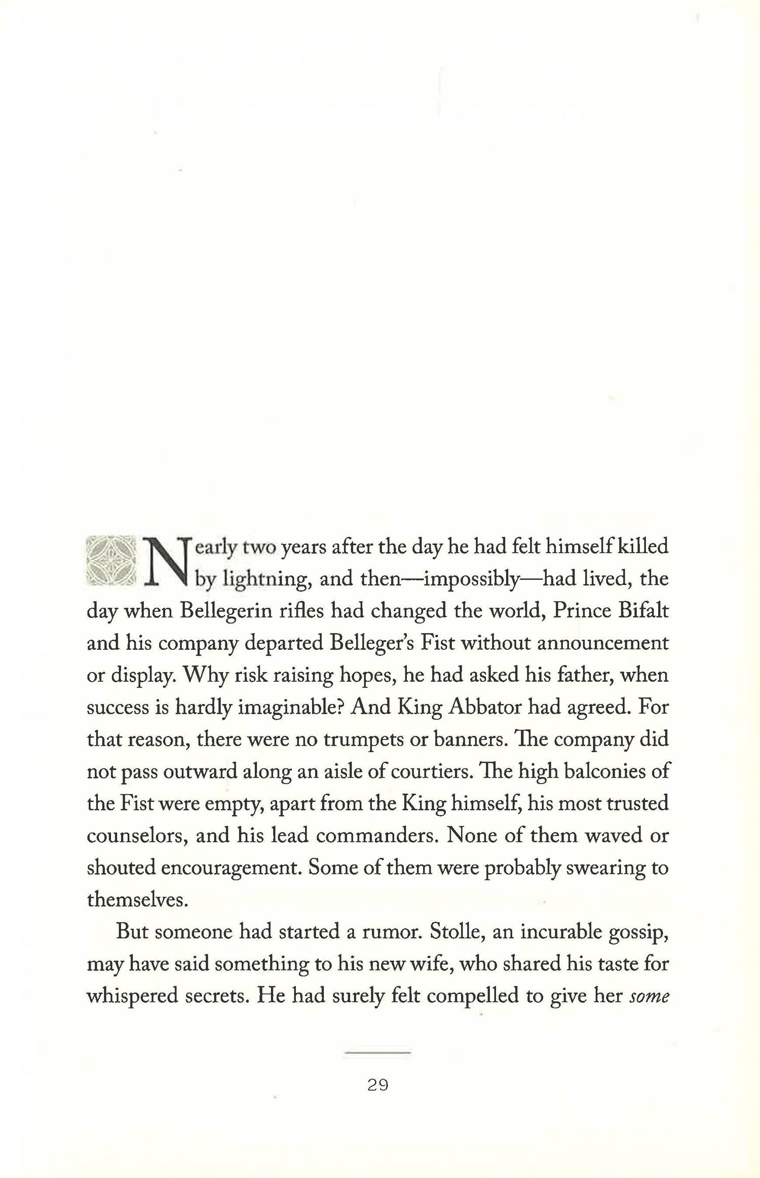 Prince Bifalt hopes that Belleger's new weapons technology, the rifle, will provide a decisive advantage. But when Belleger's sorcerers are mysteriously deprived of their magical abilities, leaving them unable to defend against Amika, he must set aside his own deep hatred of sorcery and work to solve this new enigma.