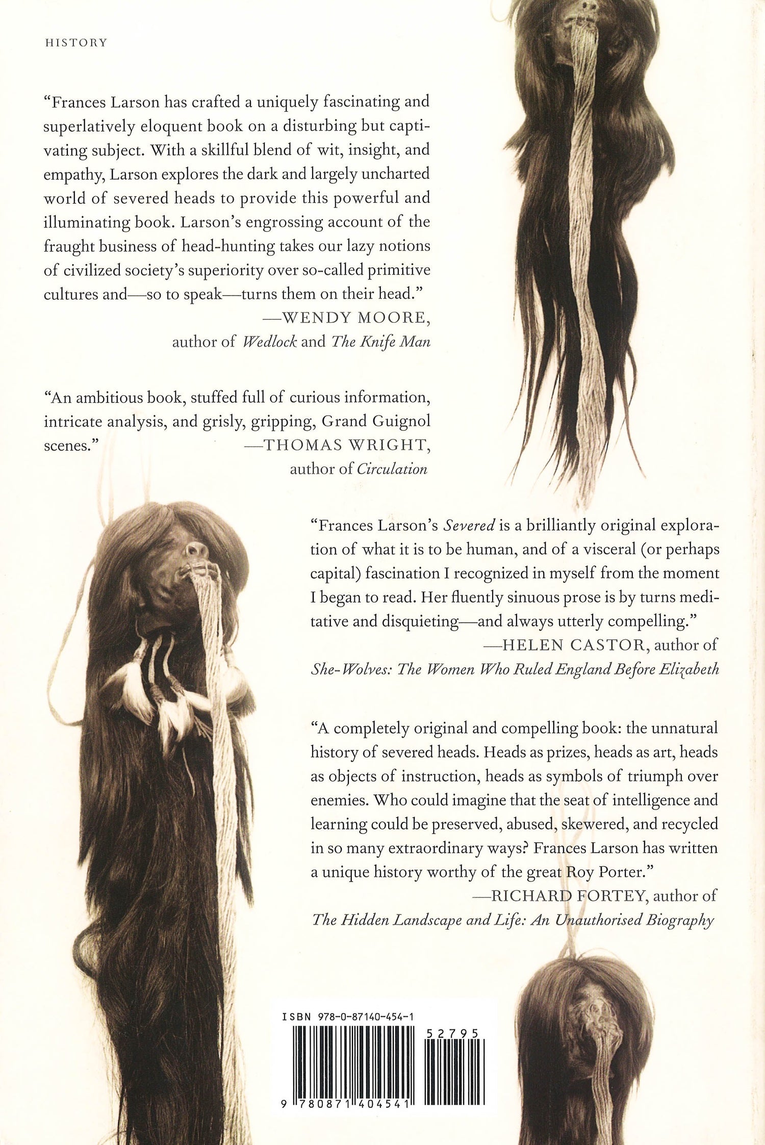 The human head is exceptional. It accommodates four of our five senses, encases the brain, and boasts the most expressive set of muscles in the body. It is our most distinctive attribute and connects our inner selves to the outer world. Yet there is a dark side to the head's preeminence, one that has, in the course of human history, manifested itself in everything from decapitation to headhunting. So explains anthropologist Frances Larson in this fascinating history of decapitated human heads. From the Western collectors whose demand for shrunken heads spurred massacres to Second World War soldiers who sent the remains of the Japanese home to their girlfriends, from Madame Tussaud modeling the guillotined head of Robespierre to Damien Hirst photographing decapitated heads in city morgues, from grave-robbing phrenologists to skull-obsessed scientists, Larson explores our macabre fixation with severed heads.