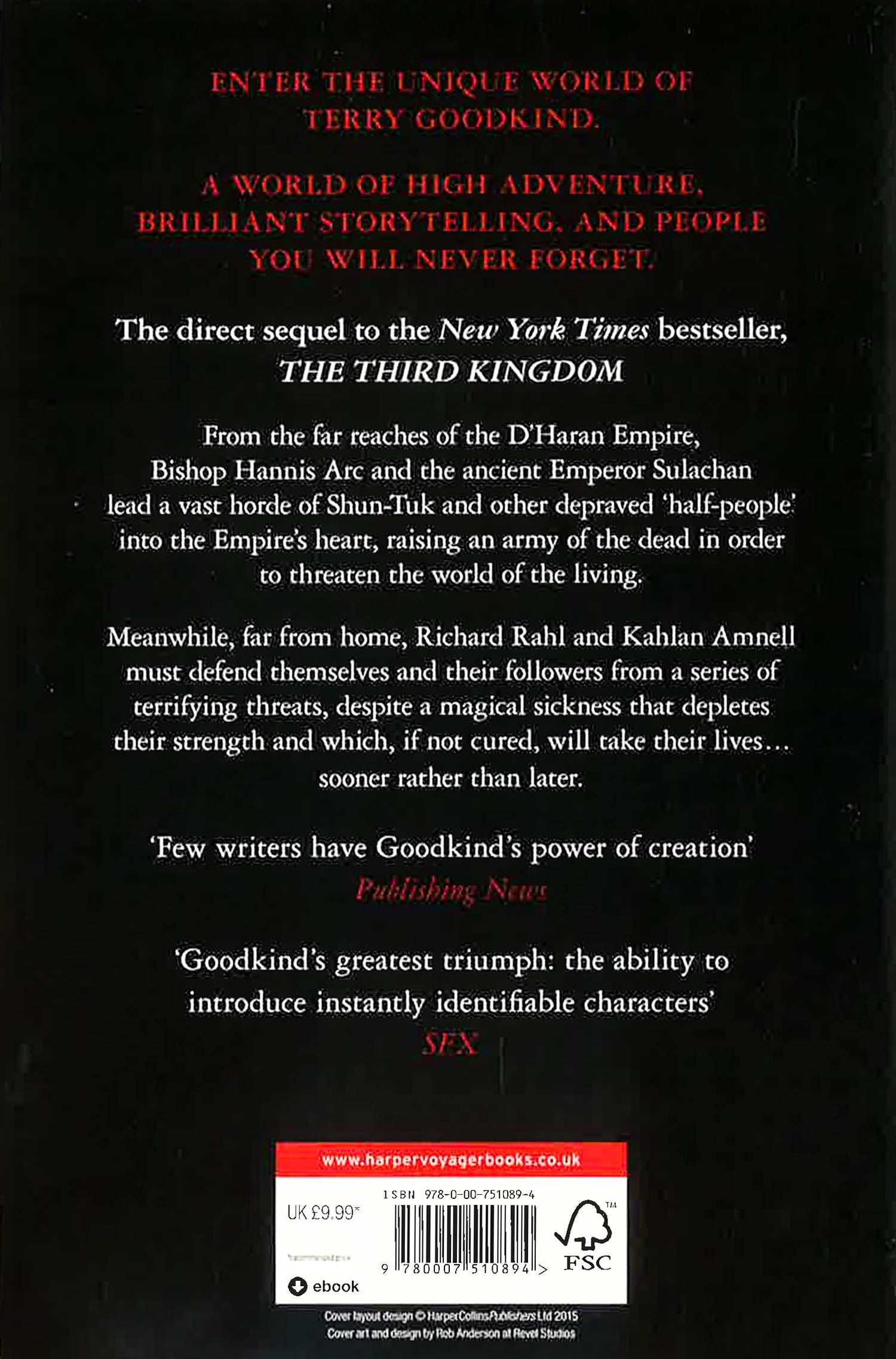 From Terry Goodkind, author of the Sword of Truth series, comes a sweeping new novel of Richard Rahl, Kahlan Amnell, and their world. From the far reaches of the D'Haran Empire, Bishop Hannis Arc and the ancient Emperor Sulachan lead a vast horde of Shun-Tuk and other depraved `half-people' into the Empire's heart, raising an army of the dead in order to threaten the world of the living. Meanwhile, far from home, Richard Rahl and Kahlan Amnell must defend themselves and their followers from a series of terrifying threats, despite a magical sickness that depletes their strength and which, if not cured, will take their lives...sooner rather than later.