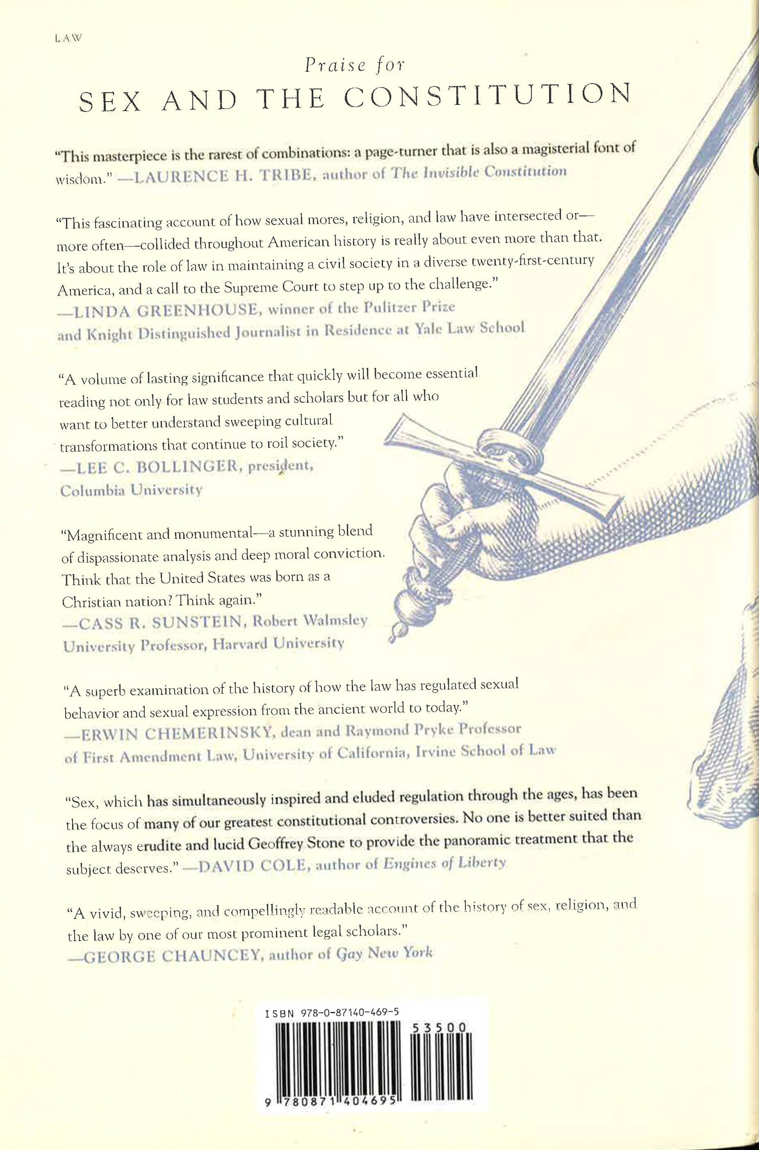 There has never been a book like Sex and the Constitution, a one-volume history that chapter after chapter overturns popular shibboleths, while dramatically narrating the epic story of how sex came to be legislated in America.Beginning his volume in the ancient and medieval worlds, Geoffrey R. Stone demonstrates how the Founding Fathers, deeply influenced by their philosophical forebears, saw traditional Christianity as an impediment to the pursuit of happiness and to the quest for human progress. Acutely aware of the need to separate politics from the divisive forces of religion, the Founding Fathers crafted a constitution that expressed the fundamental values of the Enlightenment. Although the Second Great Awakening later came to define America through the lens of evangelical Christianity, nineteenth-century Americans continued to view sex as a matter of private concern, so much so that sexual expression and information about contraception circulated freely, abortions before "quickening" remained legal, and prosecutions for sodomy were almost nonexistent. The late nineteenth and early twentieth centuries reversed such tolerance, however, as charismatic spiritual leaders and barnstorming politicians rejected the values of our nation's founders. Spurred on by Anthony Comstock, America's most feared enforcer of morality, new laws were enacted banning pornography, contraception, and abortion, with Comstock proposing that the word "unclean" be branded on the foreheads of homosexuals. Women increasingly lost control of their bodies, and birth control advocates, like Margaret Sanger, were imprisoned for advocating their beliefs. In this new world, abortions were for the first time relegated to dank and dangerous back rooms. The twentieth century gradually saw the emergence of bitter divisions over issues of sexual "morality" and sexual freedom. Fiercely determined organizations and individuals on both the right and the left wrestled in the domains of politics, religion, public opinion, and the courts to win over the soul of the nation. With its stirring portrayals of Supreme Court justices, Sex and the Constitution reads like a dramatic gazette of the critical cases they decided, ranging from Griswold v. Connecticut (contraception), to Roe v. Wade (abortion), to Obergefell v. Hodges (gay marriage), with Stone providing vivid historical context to the decisions that have come to define who we are as a nation. Now, though, after the 2016 presidential election, we seem to have taken a huge step backward, with the progress of the last half century suddenly imperiled. No one can predict the extent to which constitutional decisions safeguarding our personal freedoms might soon be eroded, but Sex and the Constitution is more vital now than ever before.