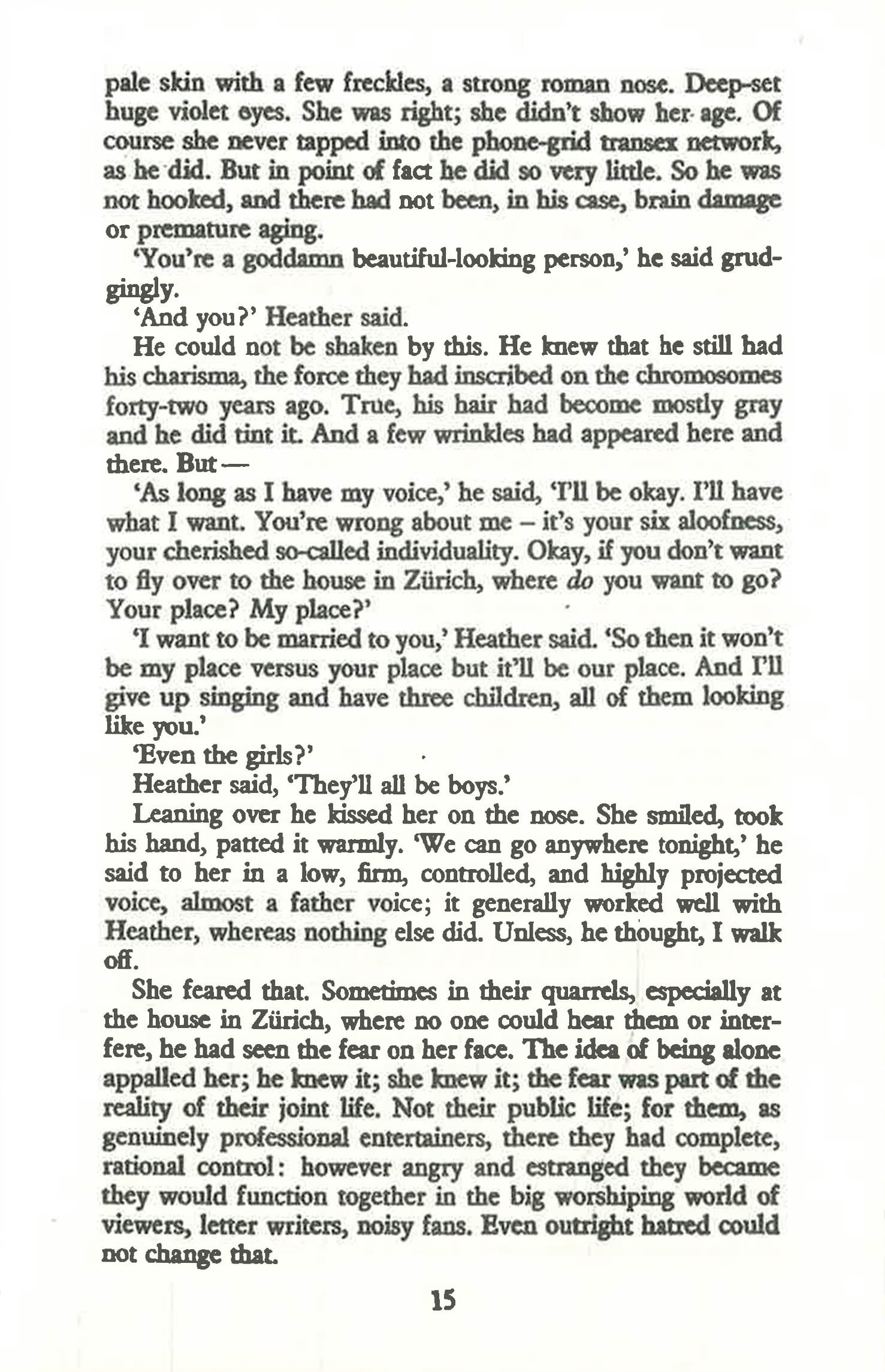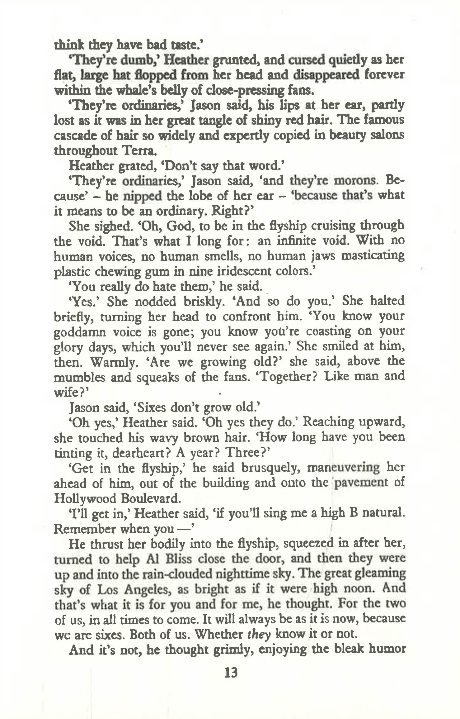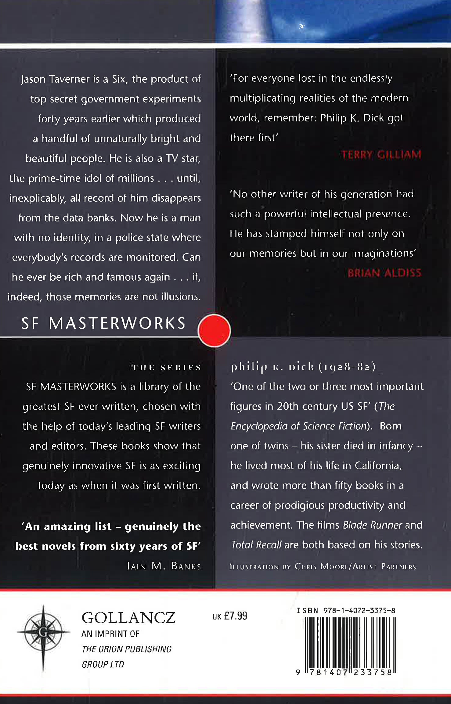 Jason Taverner has a glittering TV career, millions of fans, great wealth and something close to eternal youth. He is one of a handful of brilliant, beautiful people, the product of top-secret government experiments forty years earlier. But suddenly, all records of him vanish. He becomes a man with no identity, in a police state where everyone us closely monitored. Can he ever be rich and famous again? Or was that life just an illusion?
