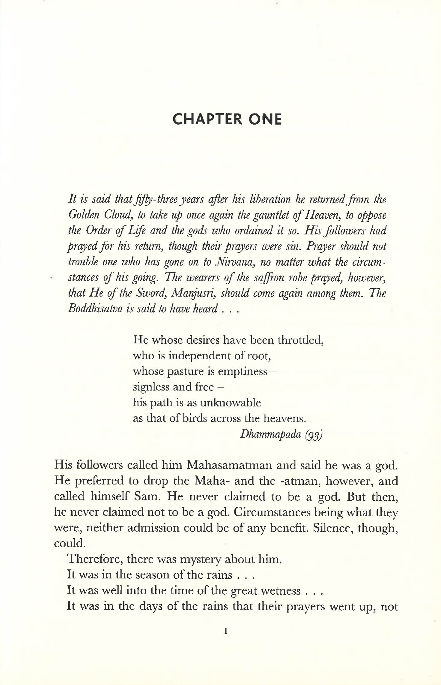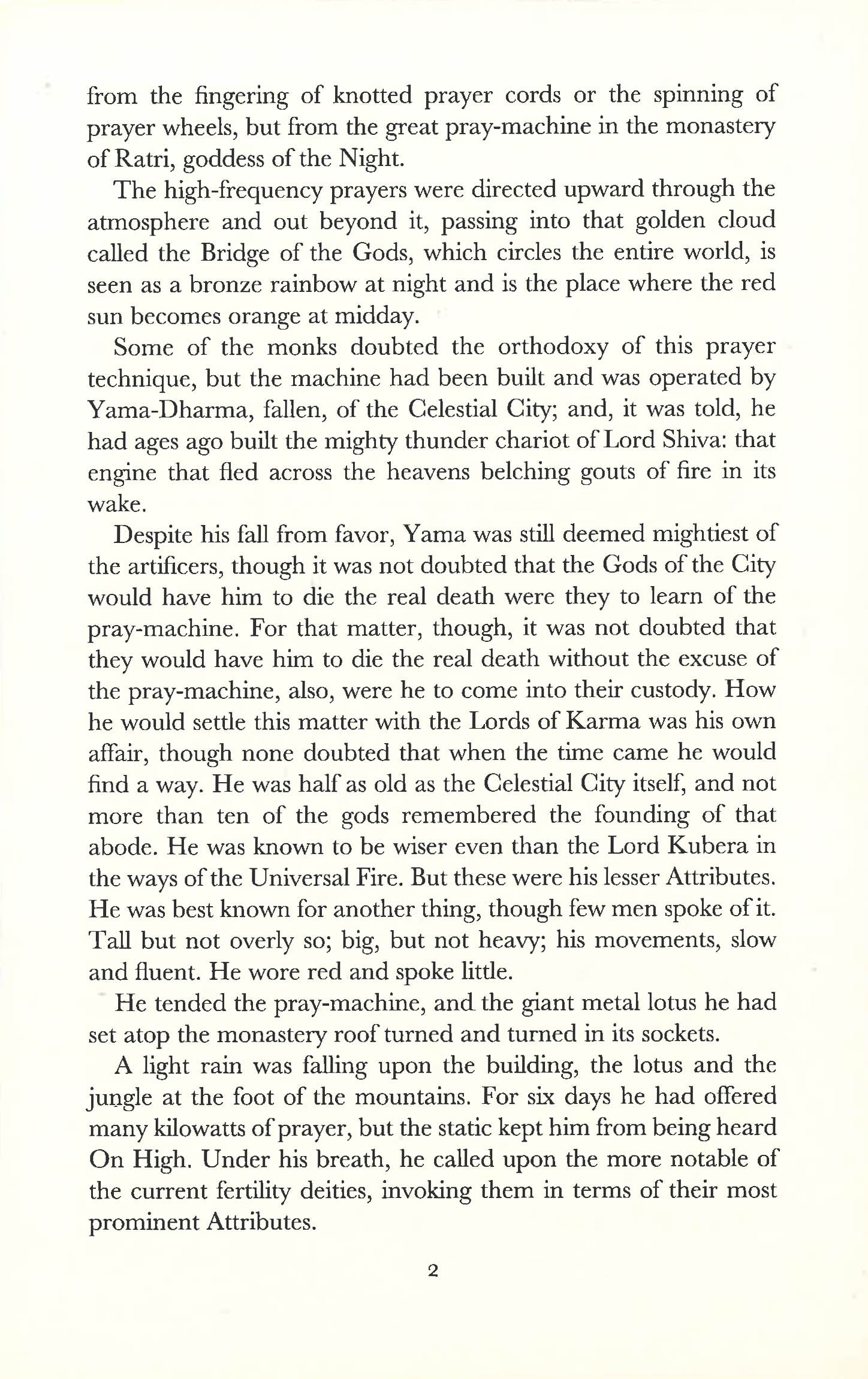 Their names include Brahma, Kali, Krishna and also he who was called Buddha, the Lord of Light, but who now prefers to be known simply as Sam. The gradual unfolding of the story - how the colonization of another planet became a re-enactment of Eastern mythology - is one of the great imaginative feats of modern science fiction.