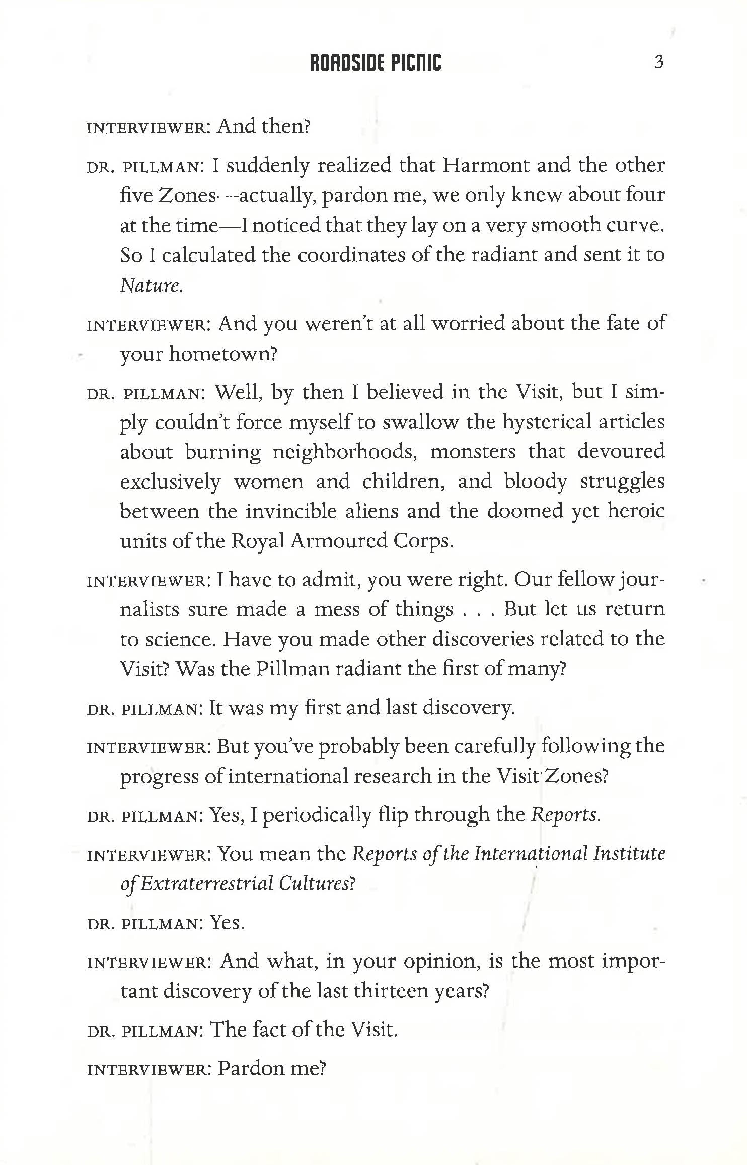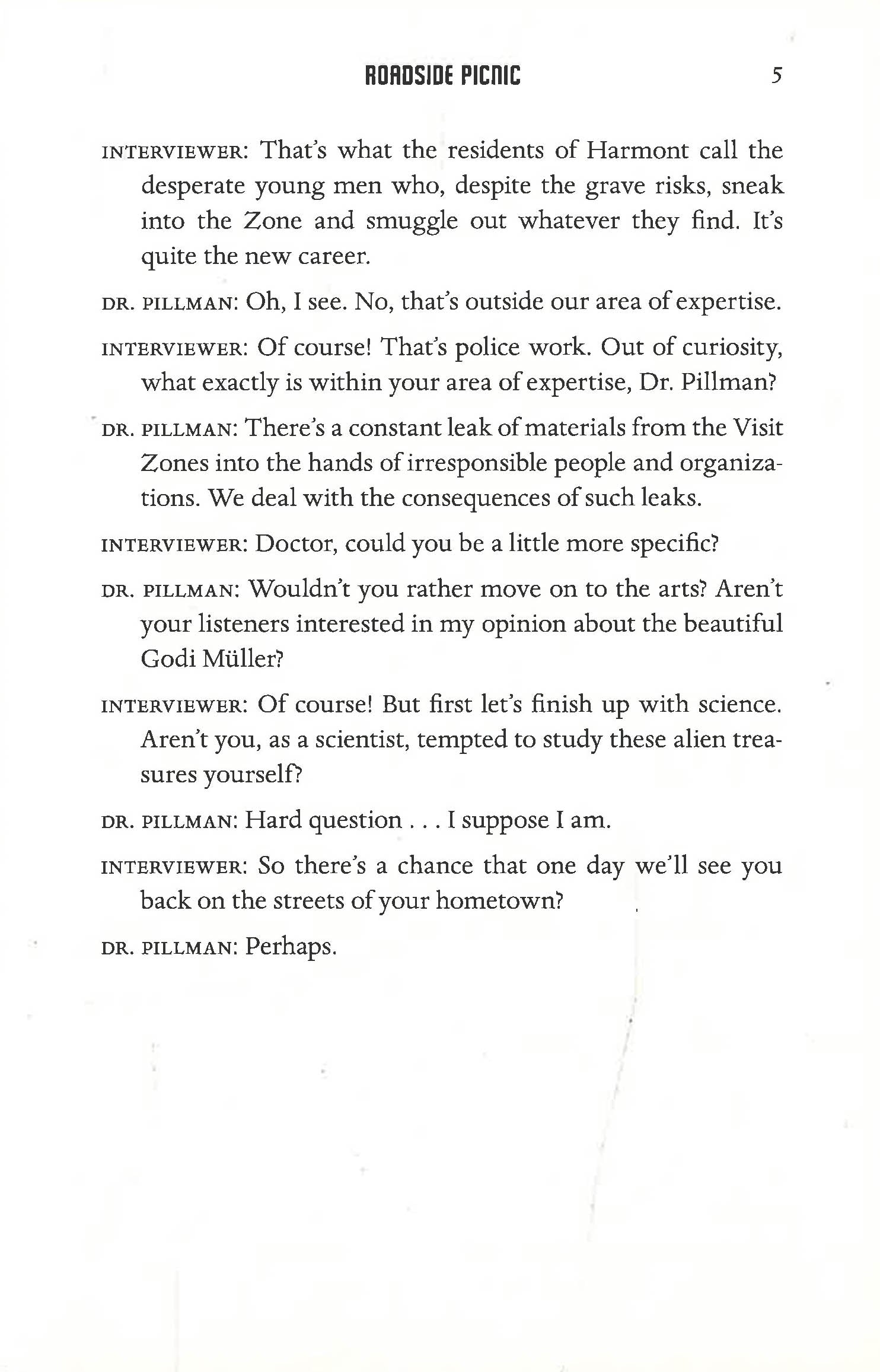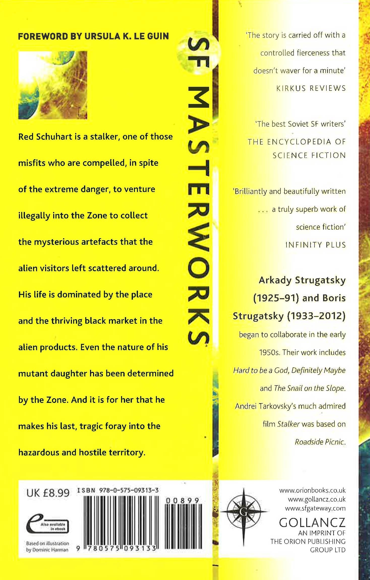 Red Schuhart is a stalker, one of those strange misfits who are compelled by some unknown force to venture illegally into the Zone and, in spite of the extreme danger, collect the mysterious artefacts that the alien visitors left scattered around. His life is dominated by the Zone and the thriving black market in the alien products. Even the nature of his daughter has been determined by the Zone. And it is for her that Red makes his last, tragic foray into the hazardous and hostile depths.