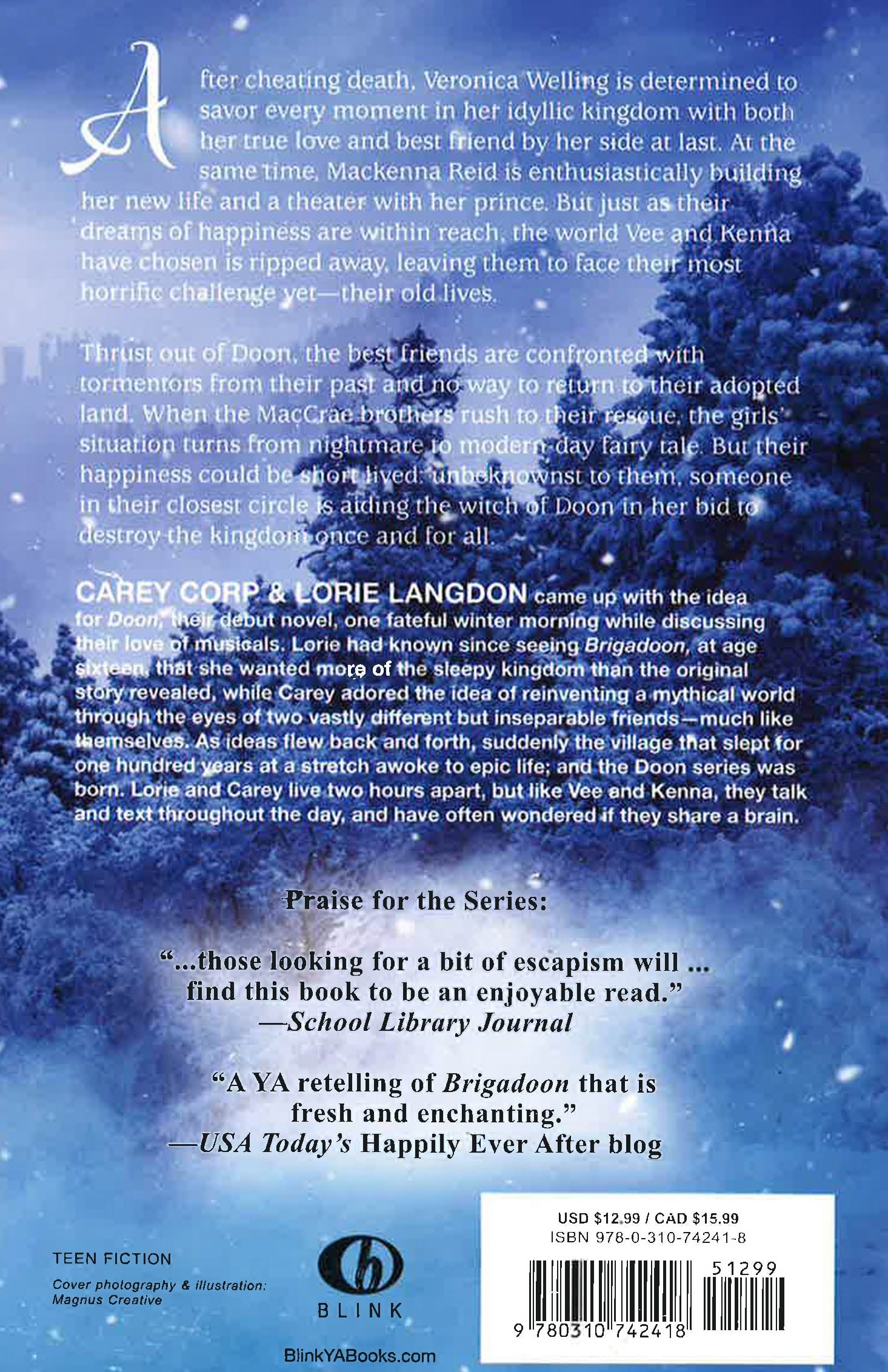 With her best friend Mackenna Reid now a permanent citizen of Doon, and her relationship with her prince and true love Jaime back on track, Veronica is certain things are finally right with her kingdom. Until she suddenly becomes ill, collapsing as the witch of Doon begins draining of her life. Desperate to save Veronica, Jamie will do anything-including casting a forbidden spell that trades his health for Vee's recovery.
