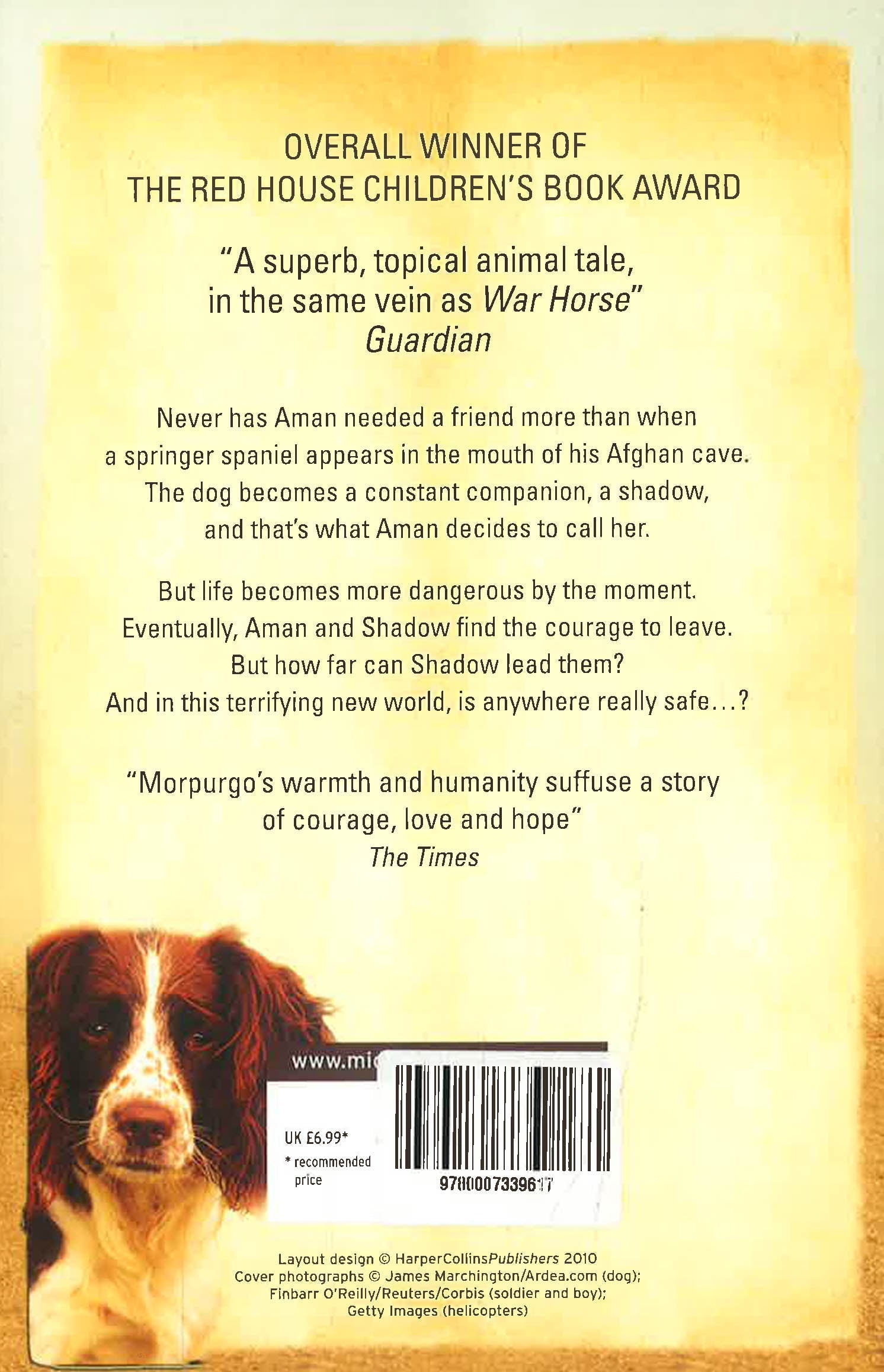 Never have Aman and his mother needed a friend more than when a Springer Spaniel appears – thin and war-ravaged – in the mouth of their Afghan cave. Nursed back to health by Aman, the dog becomes a constant companion, a shadow, and that's what Aman decides to call her.