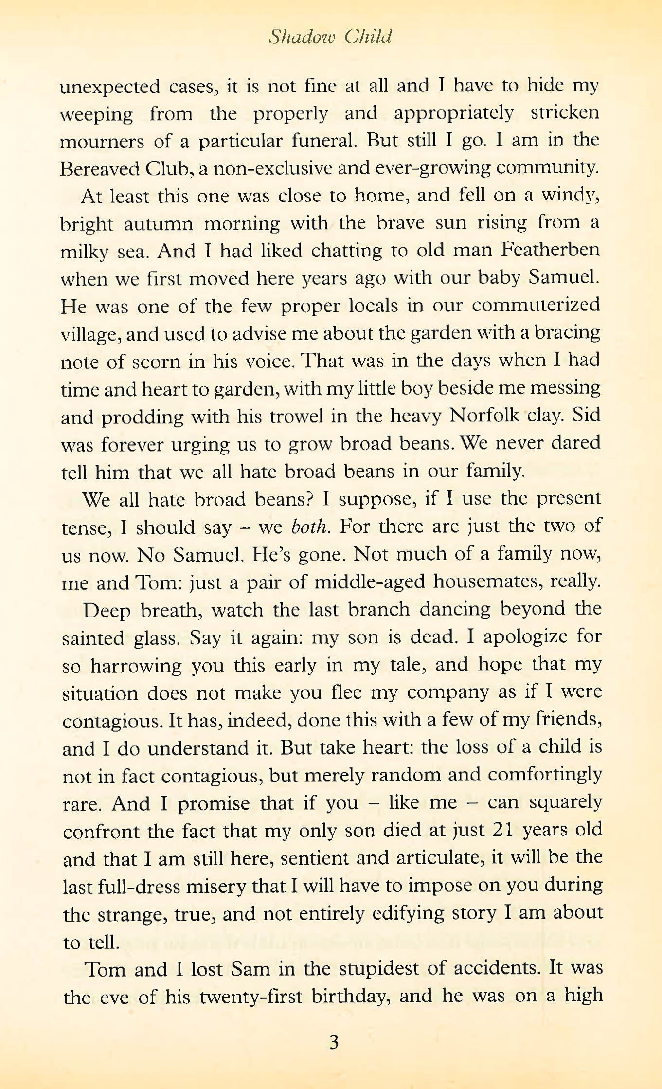 Family love is one of the most powerful elemental forces on earth, and at that moment, our last moment as a unit of three, we rode a great curling triumphant wave of it, all together. Death may have thought that he won, but I think otherwise.' There is no right way to deal with the loss of a beloved son. Marion and Tom are doing their dignified best, but their own relationship is taking a battering. So when a fierce, strange woman turns up and demands to see the dead boy, Marion is almost glad of the distraction. Against Tom's wishes, she determines to find out more about her son's life away from home. The quest takes her out of her comfortable, conventional world to a shabby office in East London, and a series of shocks. Tom, furious, finds his own solution, and amid scandal, sorrow and exaltation the quiet Middle-Englanders discover that there is more than one kind of family.