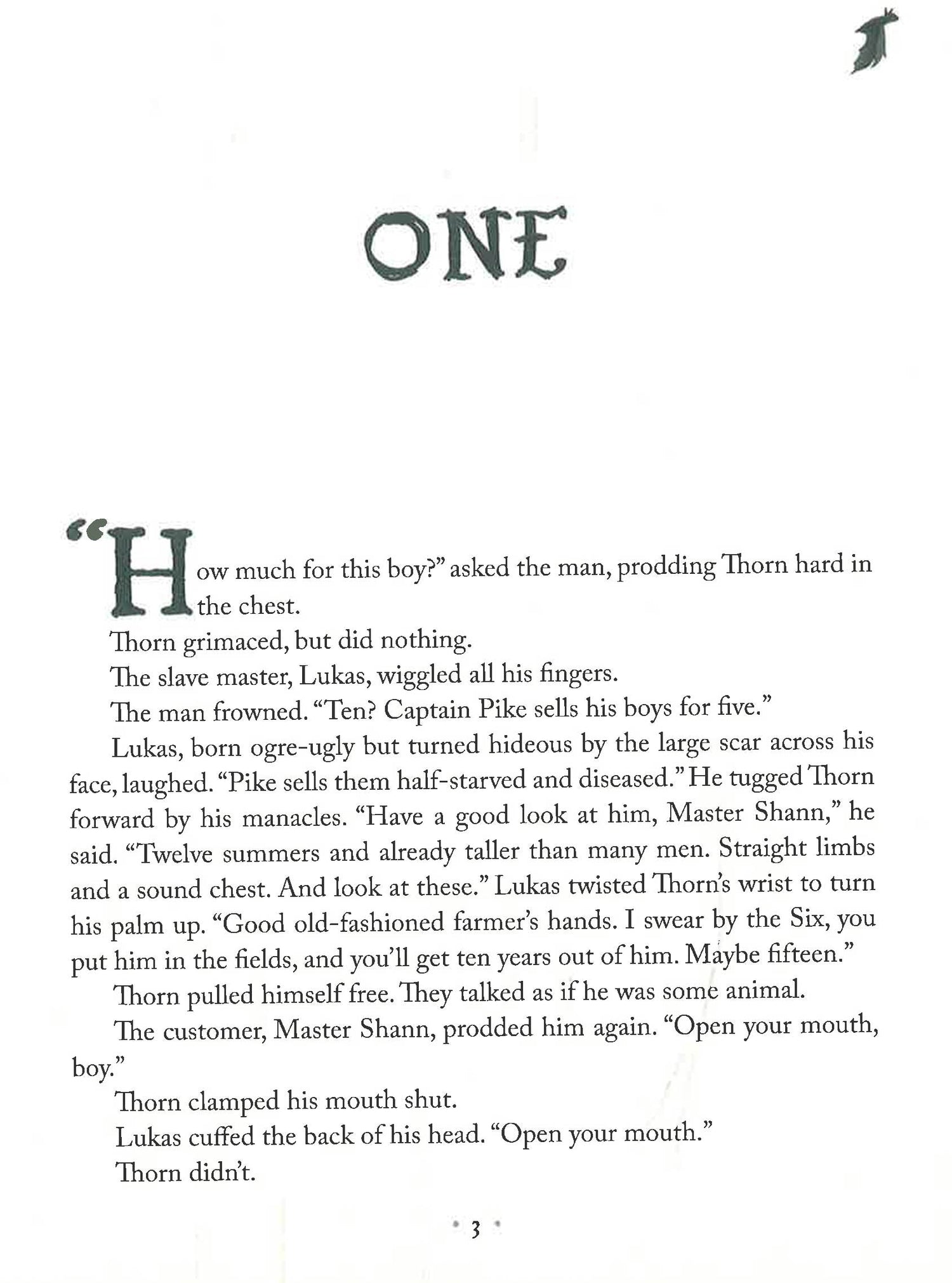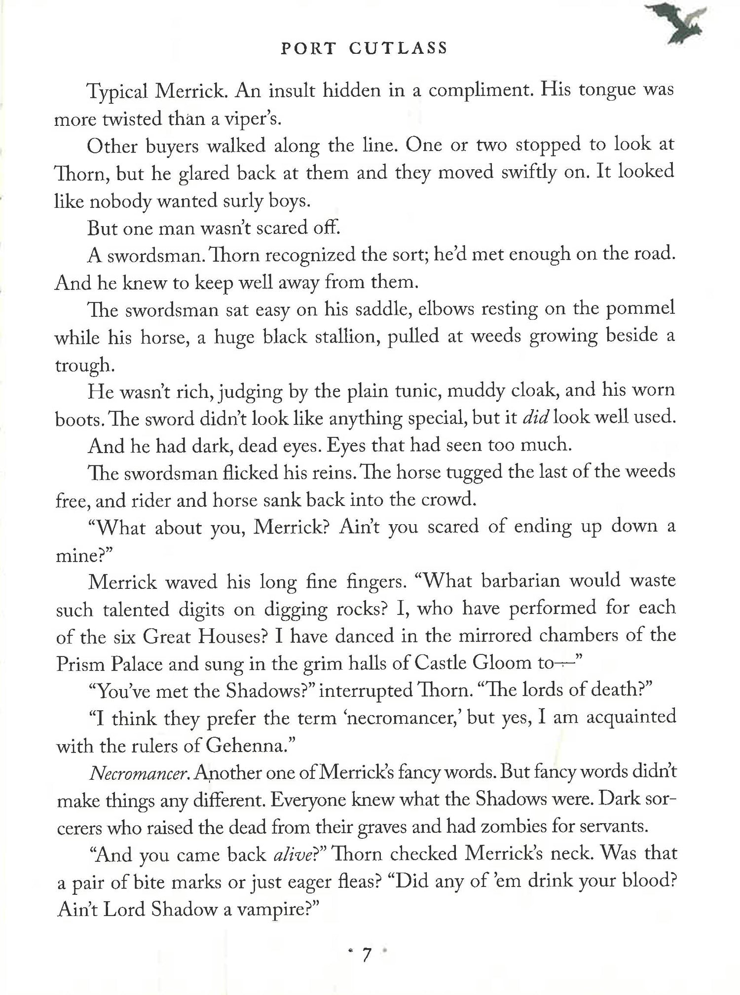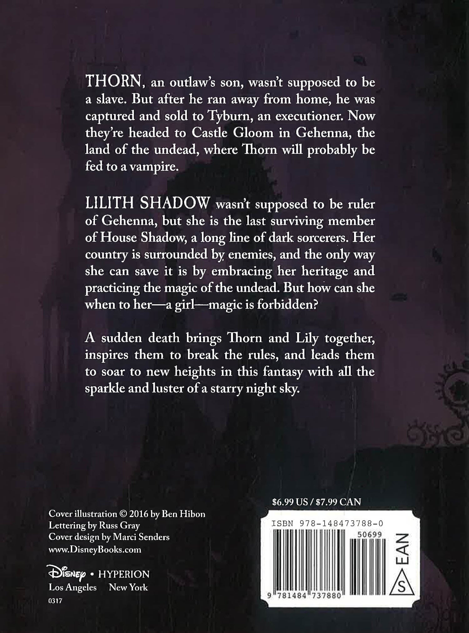 Thorn, an outlaw's son, wasn't supposed to be a slave. He's been sold to Tyburn, an executioner, and they're headed to Castle Gloom in Gehenna, the land of undead, where Thorn will probably be fed to a vampire. Lilith Shadow wasn't supposed to be ruler of Gehenna. But following the murder of her family, young Lily became the last surviving member of House Shadow, a long line of dark sorcerers. Her country is surrounded by enemies and the only way she can save it is by embracing her heritage and practicing the magic of the undead. But how can she when, as a girl, magic is forbidden to her?