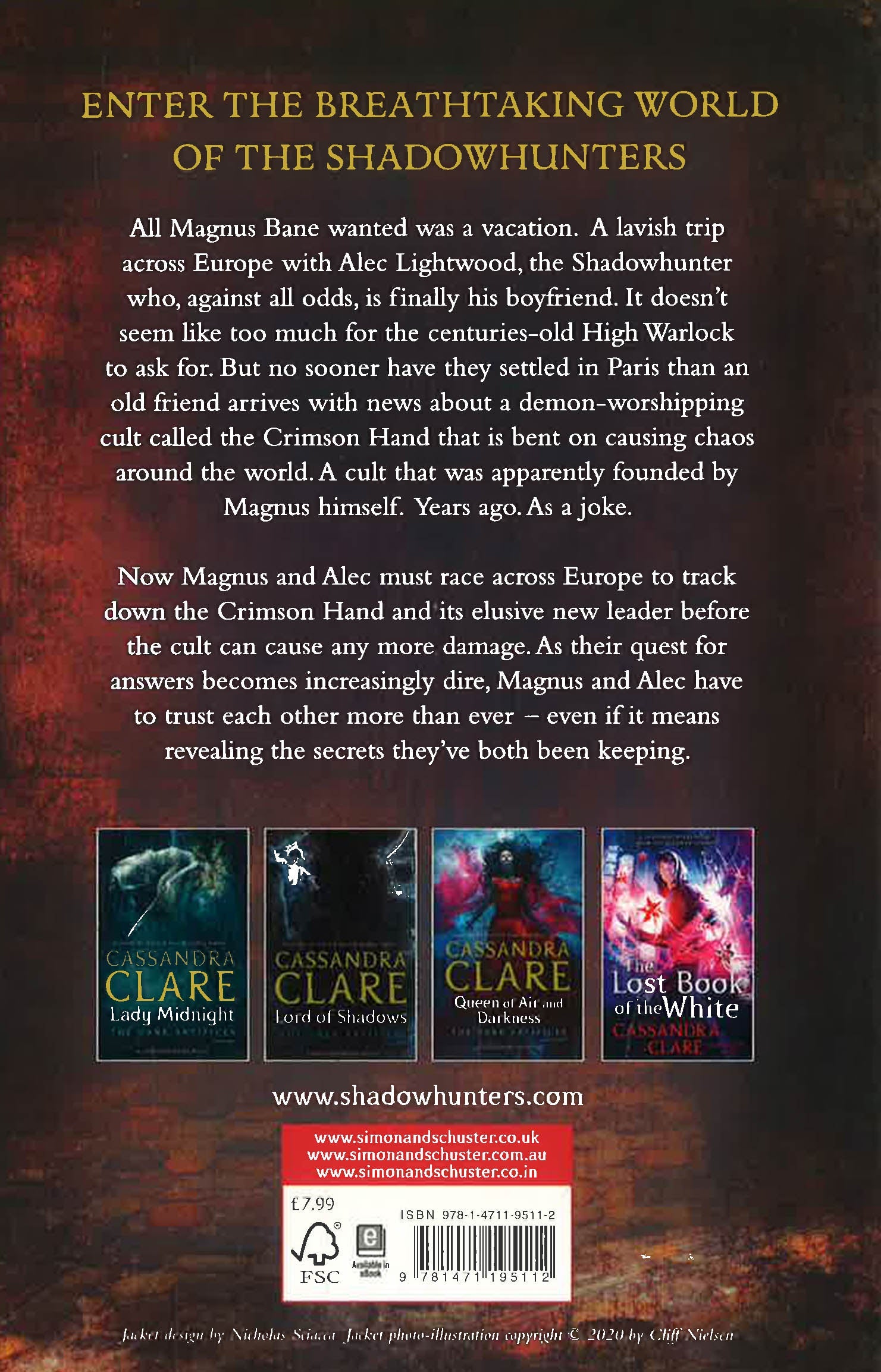 All Magnus Bane wanted was a vacation―a lavish trip across Europe with Alec Lightwood, the Shadowhunter who against all odds is finally his boyfriend. But as soon as the pair settles in Paris, an old friend arrives with news about a demon-worshipping cult called the Crimson Hand that is bent on causing chaos around the world. A cult that was apparently founded by Magnus himself. Years ago. As a joke.