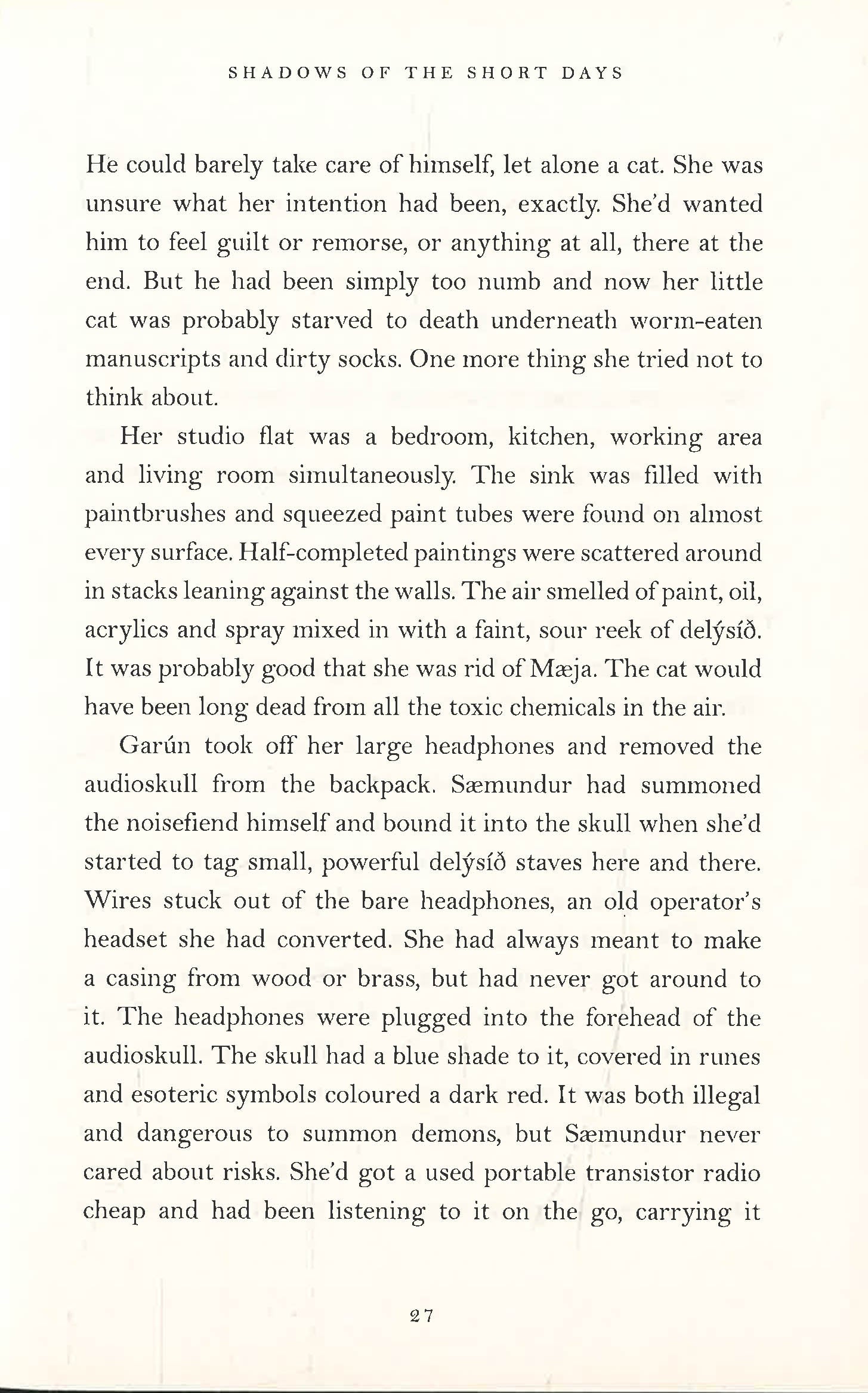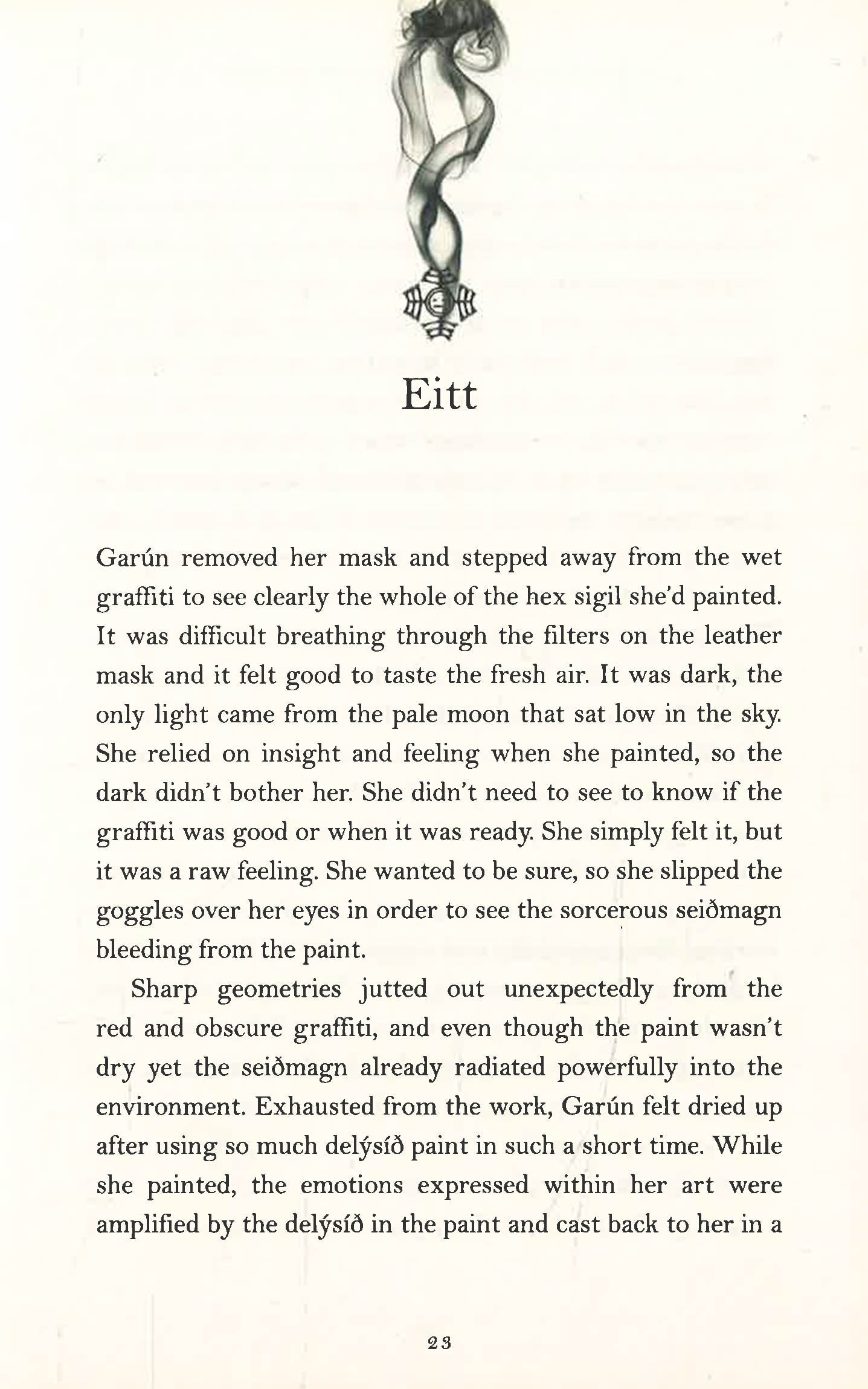 Sæmundur, addict and sorcerer, has been cast out from university, and forbidden to study magic. Dissident artist, Garún, is desperate for a just society and will do anything to achieve it.