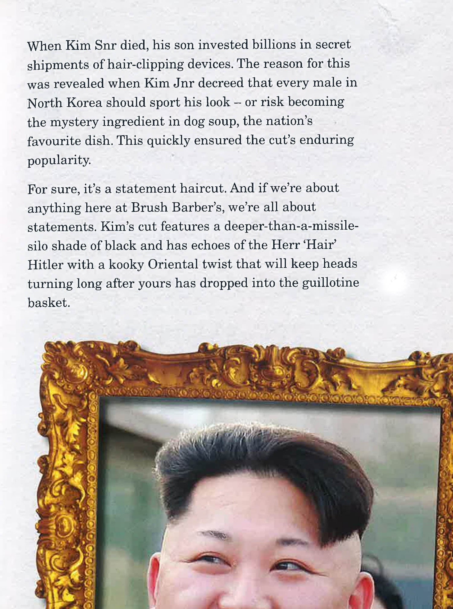 What do all despots and dictators across the ages have in common? Homicidal tendencies? Ruthless megalomania? A desire to enslave millions? Of course! But that isn't the whole story -- it's all been foretold in the hair. Combing through history, every bad-ass from Genghis Khan to Donald Trump has clambered up the pole to ultimate power on the back of some of the most radical hairdos the world has seen. It's a proven scientific fact that the badder the dude, the bigger the rug statement -- and Cut it Out features looks that will have you sprinting to the nearest salon to rock your locks. Cut it Out reveals just how the original 'dos were done and shares the intimate trade secrets of today's underground stylists hell-bent on creating total retro-hair war. Dust off that Mao suit, slip on that armband, and get ready for Big Bad Hair!