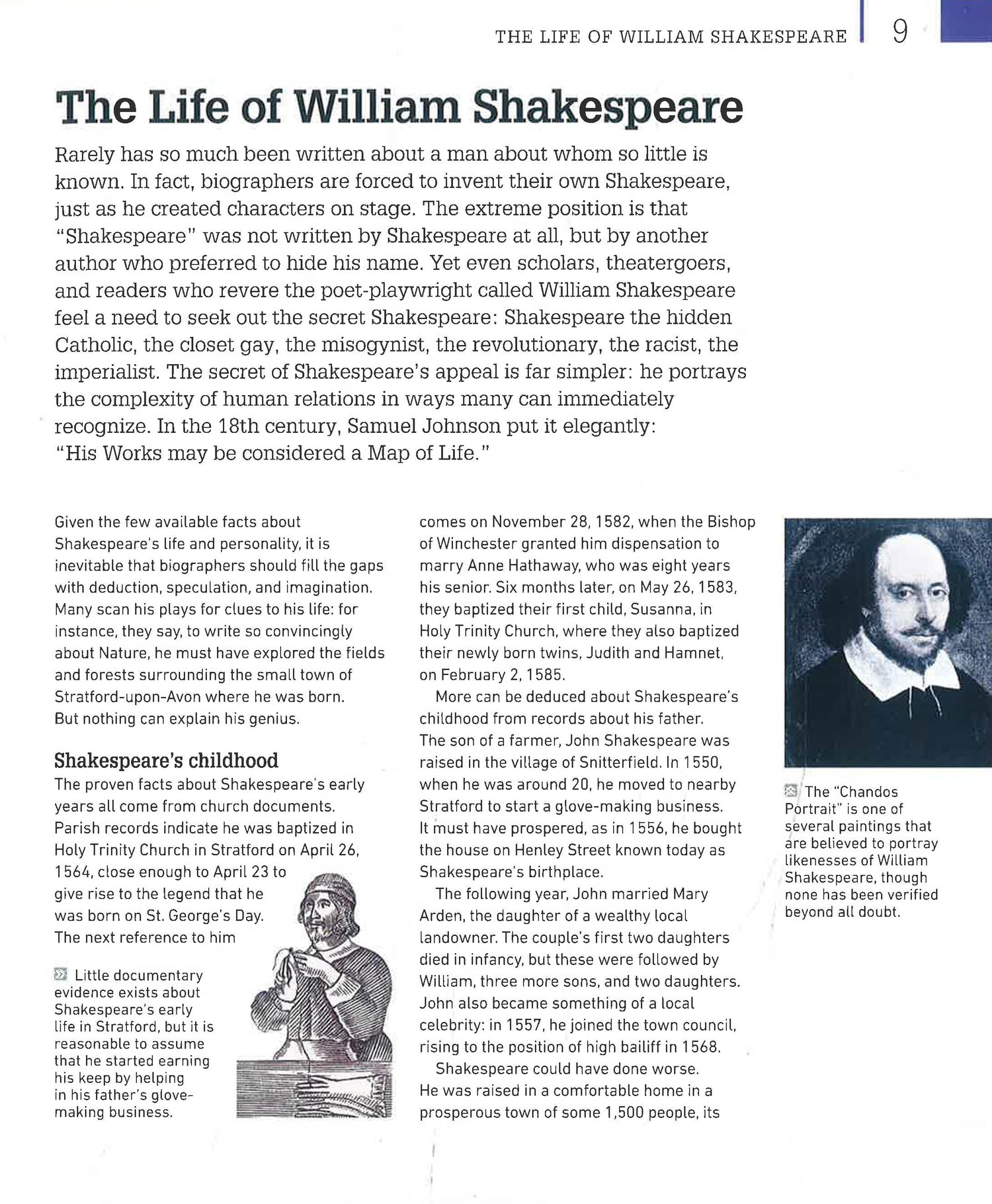• Plays ordered by time and genre, helping readers trace the development of Shakespeare’s topics, themes, and artistry.