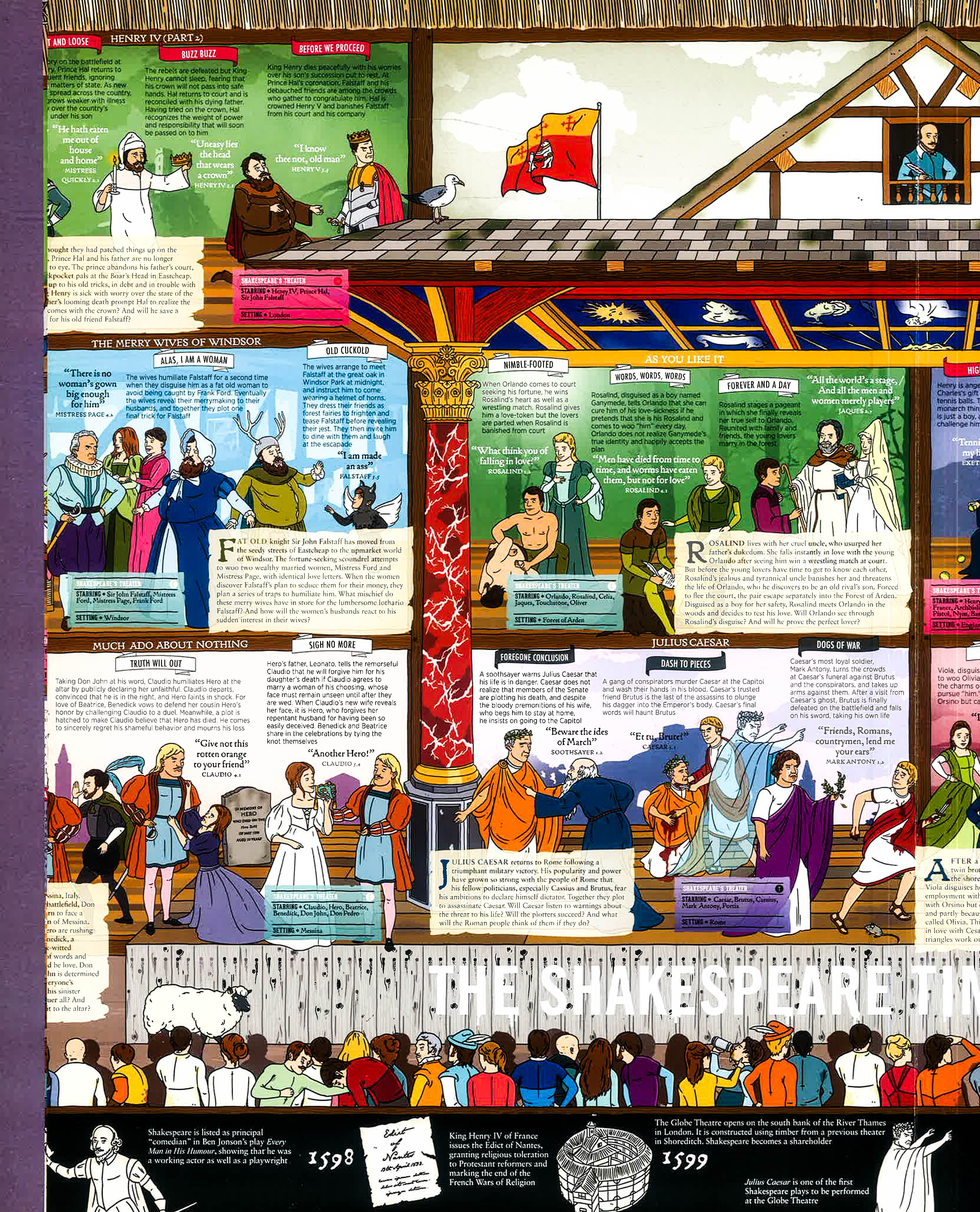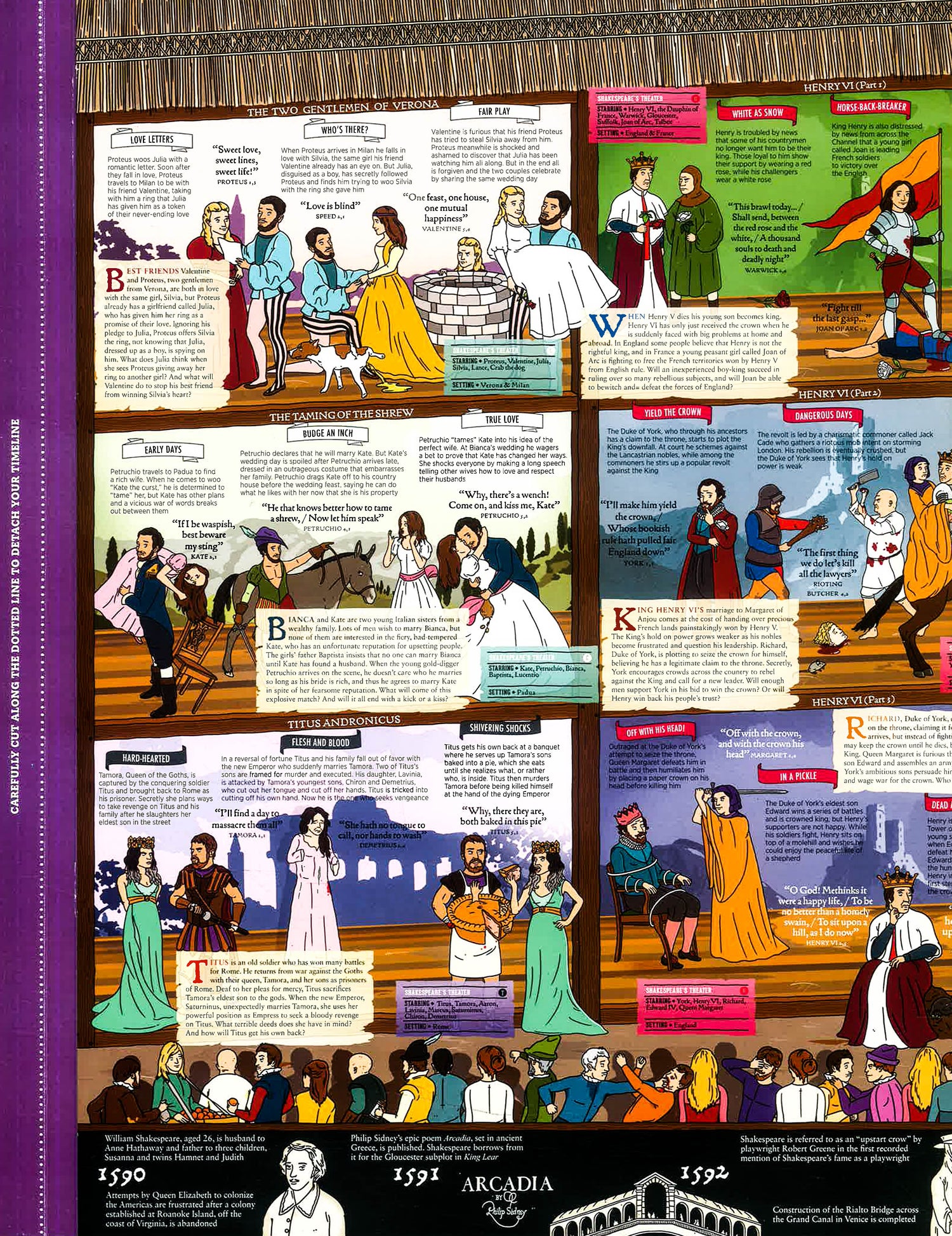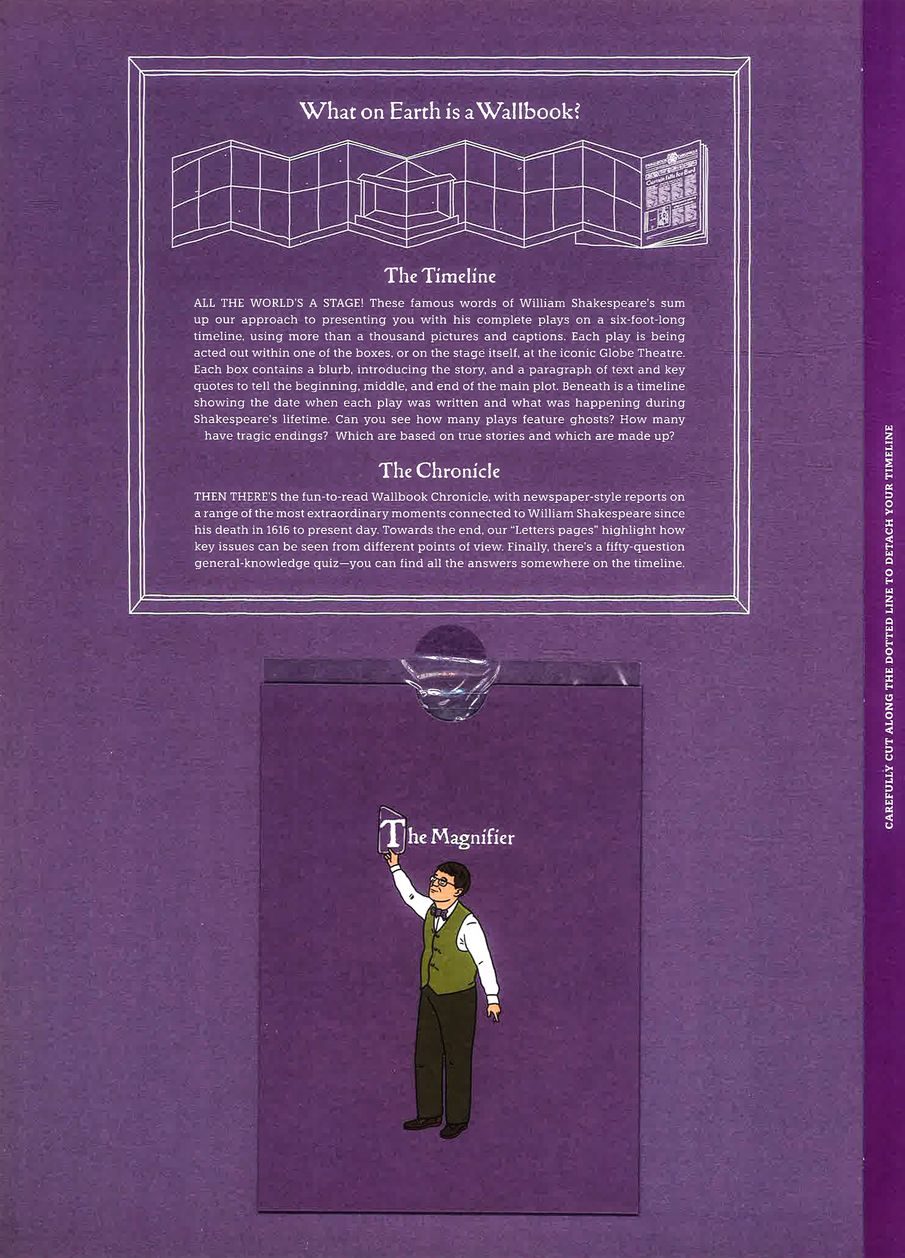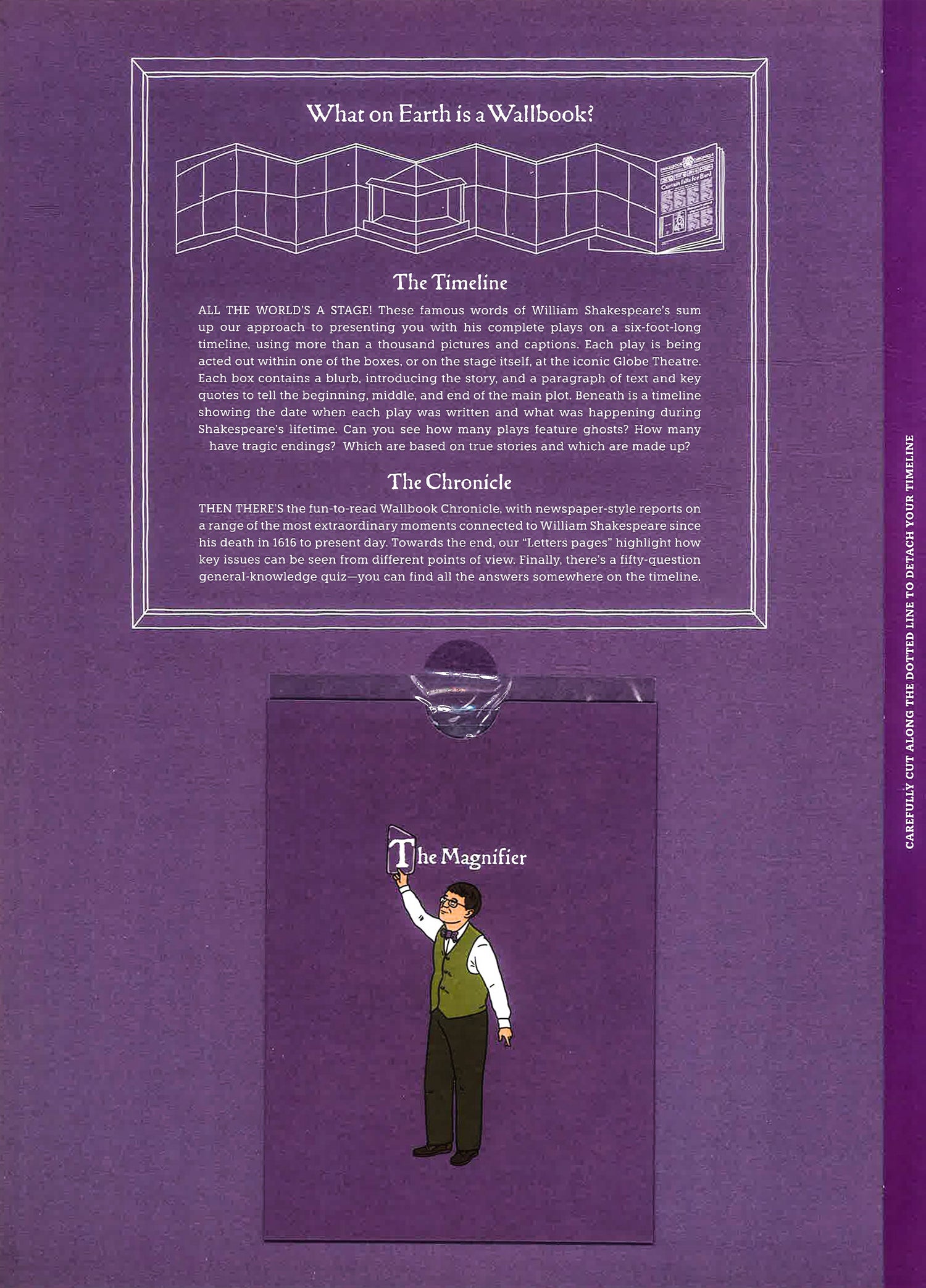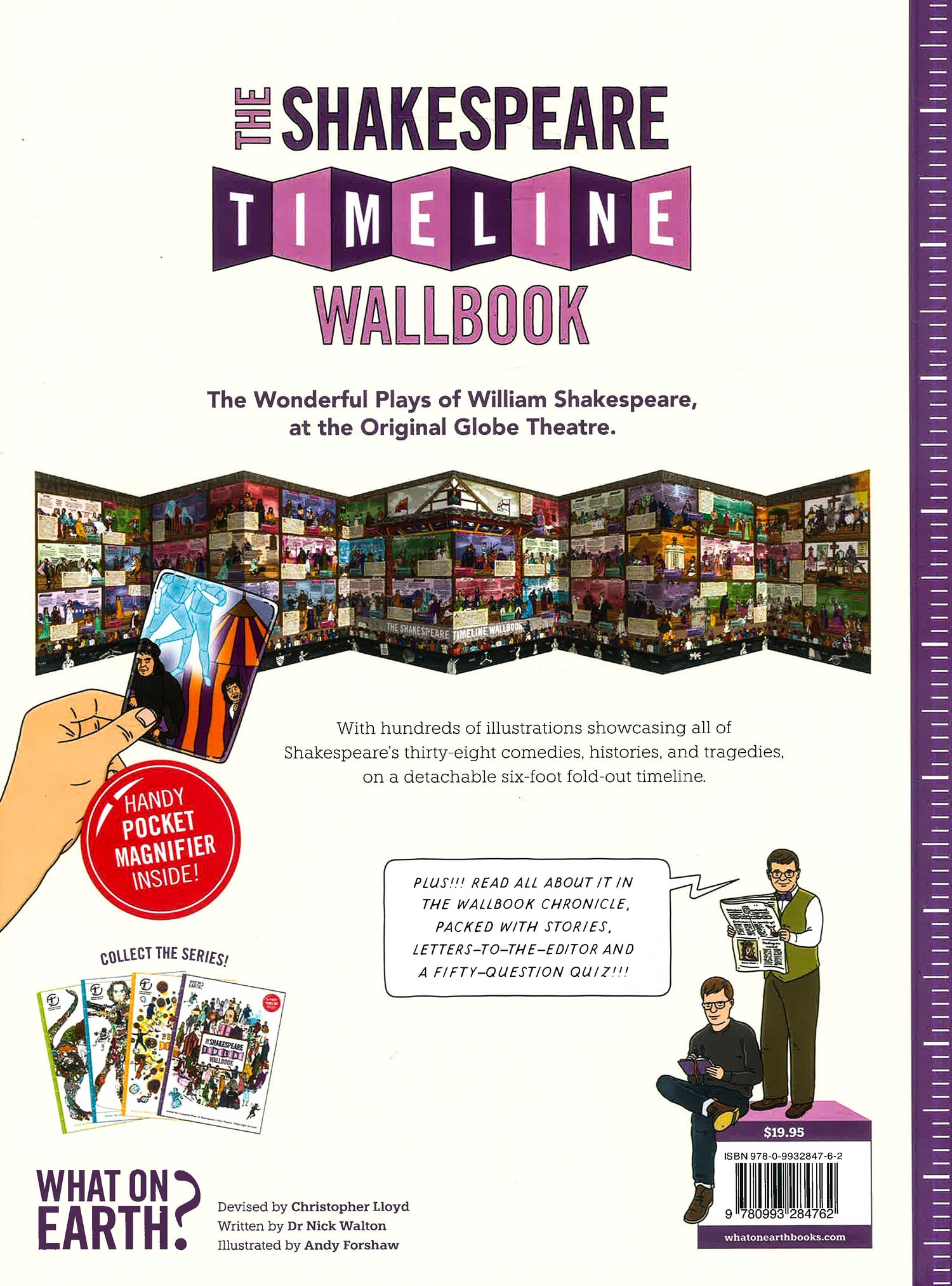 The Shakespeare Timeline Wallbook also includes an easy-to-read chronicle that reports on more than forty seminal moments from the timeline in the style of a newspaper. Other features include a page of letters to the editor, a fifty-question quiz, and pocket magnifier. Perfect for ages 6 to 14, but equally fascinating for all curious adults too.