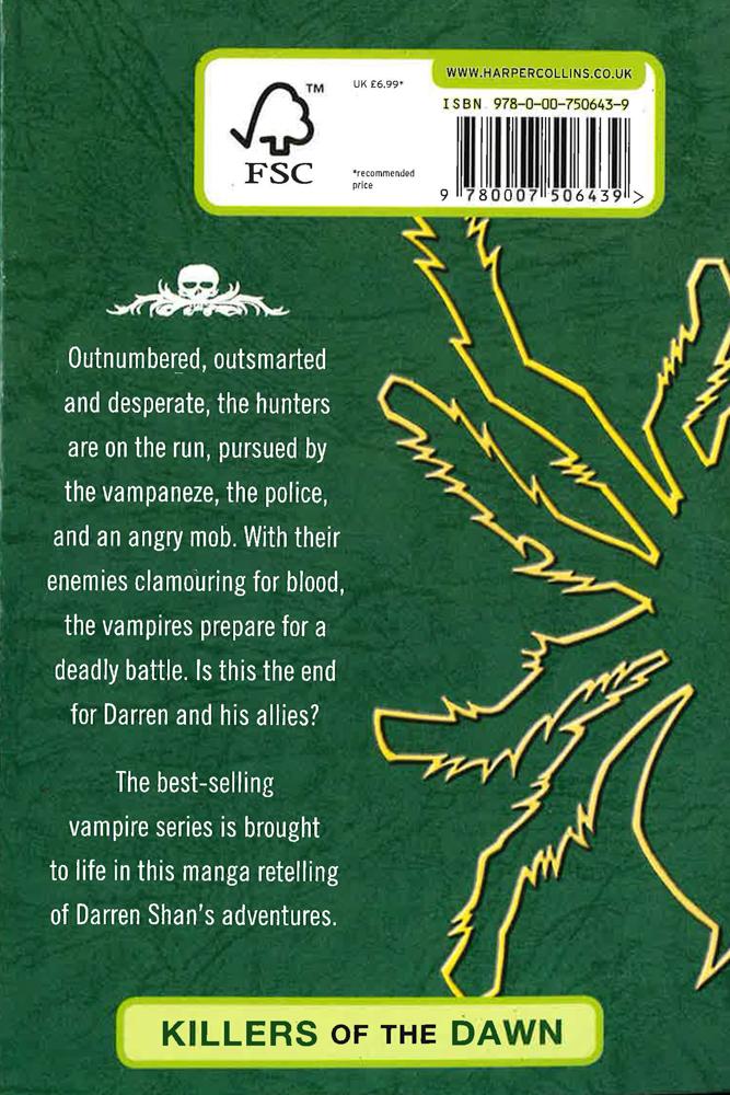 The amazing manga retelling of Darren Shan's international best-selling vampire saga, with illustrations by Japanese artist Takahiro Arai. The Saga of Darren Shan book 9: Killers of the Dawn. Outnumbered, outsmarted and desperate, the hunters are on the run. Pursued by the vampaneze, vigilante mobs and the police, Darren Shan, the Vampire Prince, is public enemy Number One! With their enemies baying for blood, the vampires prepare for deadly confrontation. Is this the end for Darren and his allies?
