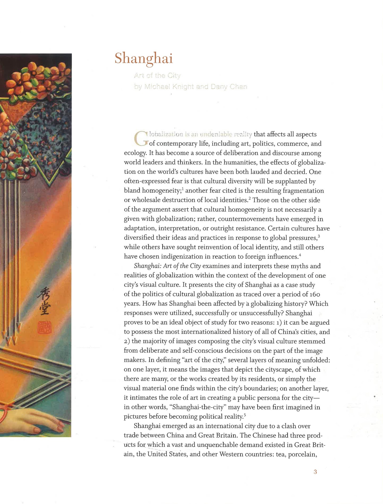 Timed to coincide with the Shanghai World Expo in 2010 (and a city-wide Shanghai Celebration in San Francisco, its sister city), Shanghai catalogs the first exhibition to explore one of China's most cosmopolitan cities. A case study in cultural globalization, the book traces, through its art, factors behind the city's distinctive character.