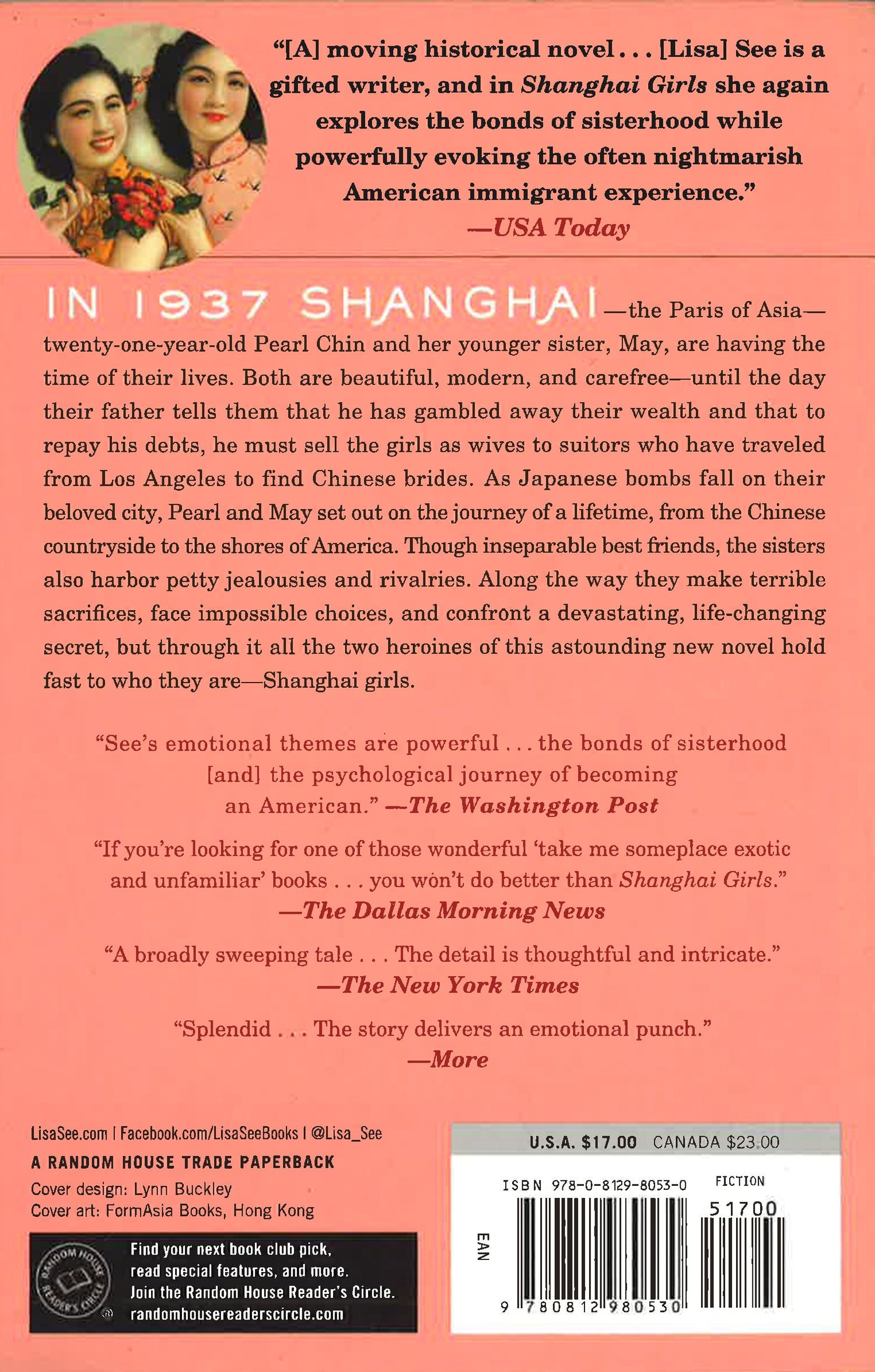 NEW YORK TIMES BESTSELLER - "A gifted writer . . . explores the bonds of sisterhood while powerfully evoking the often nightmarish American immigrant experience."--USA TodayIn 1937, Shanghai is the Paris of Asia, a city of great wealth and glamour, the home of millionaires and beggars, gangsters and gamblers, patriots and revolutionaries, artists and warlords. Thanks to the financial security and material comforts provided by their father's prosperous rickshaw business, twenty-one-year-old Pearl Chin and her younger sister, May, are having the time of their lives. Though both sisters wave off authority and tradition, they couldn't be more different: Pearl is a Dragon sign, strong and stubborn, while May is a true Sheep, adorable and placid. Both are beautiful, modern, and carefree . . . until the day their father tells them that he has gambled away their wealth and that in order to repay his debts he must sell the girls as wives to suitors who have traveled from California to find Chinese brides.As Japanese bombs fall on their beloved city, Pearl and May set out on the journey of a lifetime, one that will take them through the Chinese countryside, in and out of the clutch of brutal soldiers, and across the Pacific to the shores of America. In Los Angeles they begin a fresh chapter, trying to find love with the strangers they have married, brushing against the seduction of Hollywood, and striving to embrace American life even as they fight against discrimination, brave Communist witch hunts, and find themselves hemmed in by Chinatown's old ways and rules.At its heart, Shanghai Girls is a story of sisters: Pearl and May are inseparable best friends who share hopes, dreams, and a deep connection, but like sisters everywhere they also harbor petty jealousies and rivalries. They love each other, but each knows exactly where to drive the knife to hurt the other the most. Along the way they face terrible sacrifices, make impossible choices, and confront a devastating, life-changing secret, but through it all the two heroines of this astounding new novel hold fast to who they are: Shanghai girls.Praise for Shanghai Girls"A buoyant and lustrous paean to the bonds of sisterhood."--Booklist"A rich work . . . as compulsively readable as it is an enlightening journey."--Denver Post